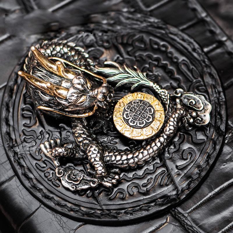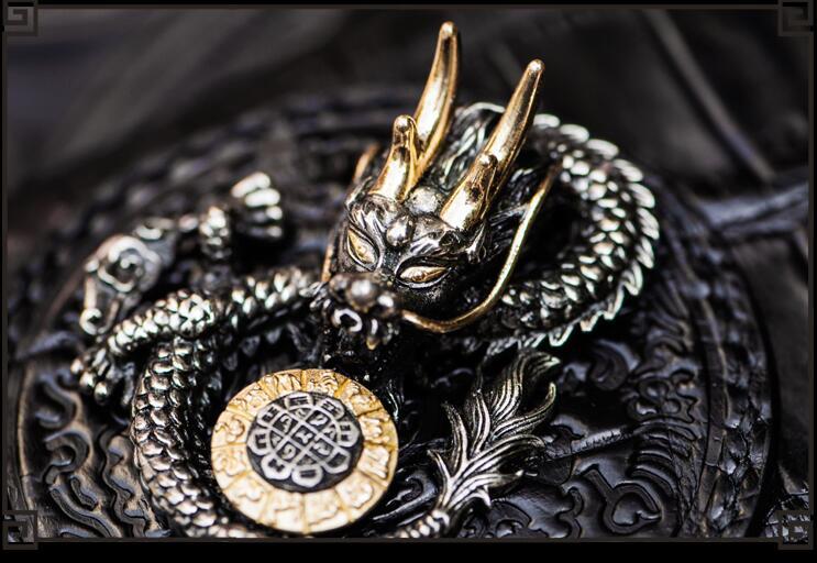 Style: Handmade Leather Chinese Dragon Mens Chain Biker Wallet Cool Leather Wallet Long Clutch Wallets for Men