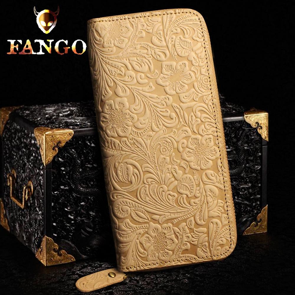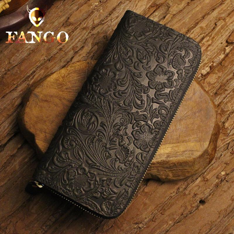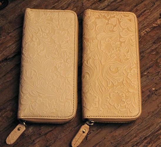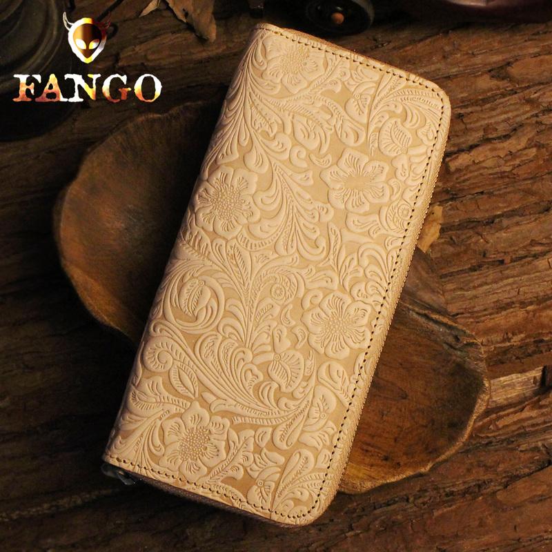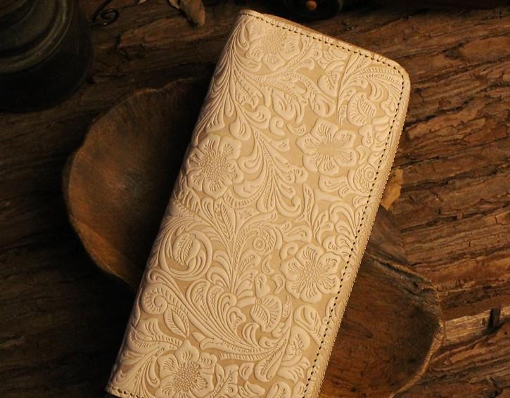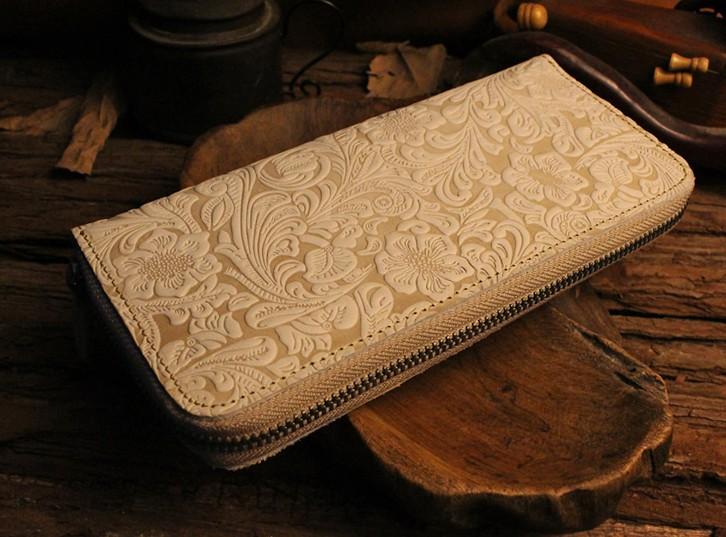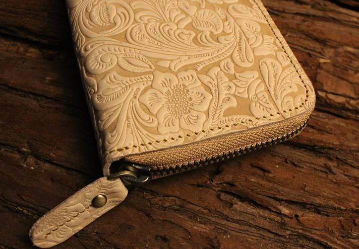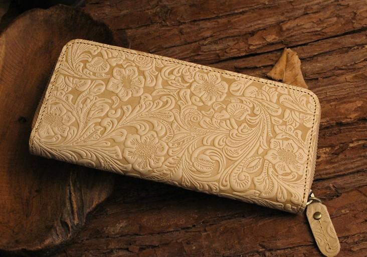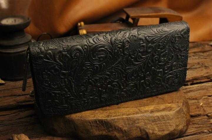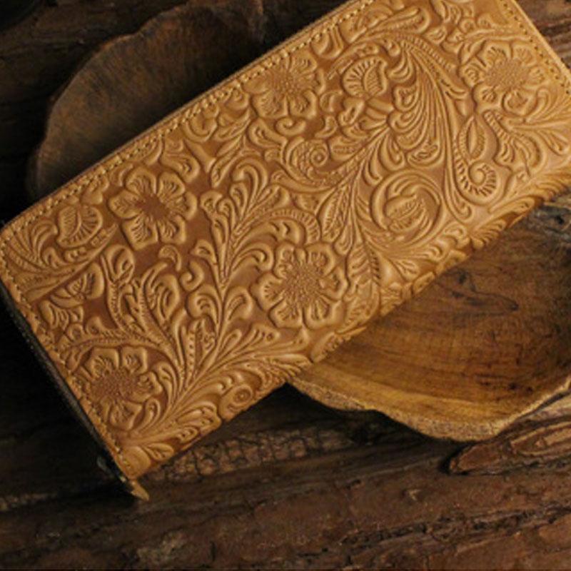 Design: Handmade Leather Floral Mens Cool Zipper Phone Travel Long Wallet Card Holder Card Slim Clutch Wallets for Men