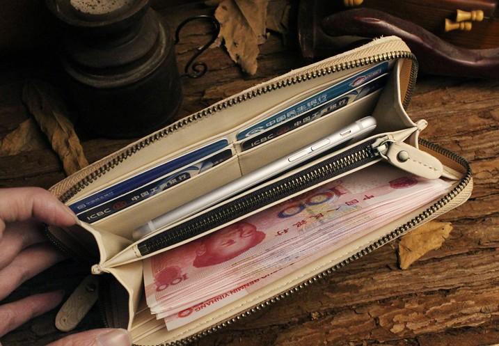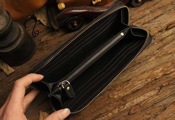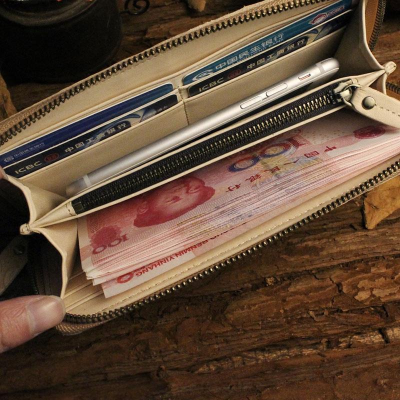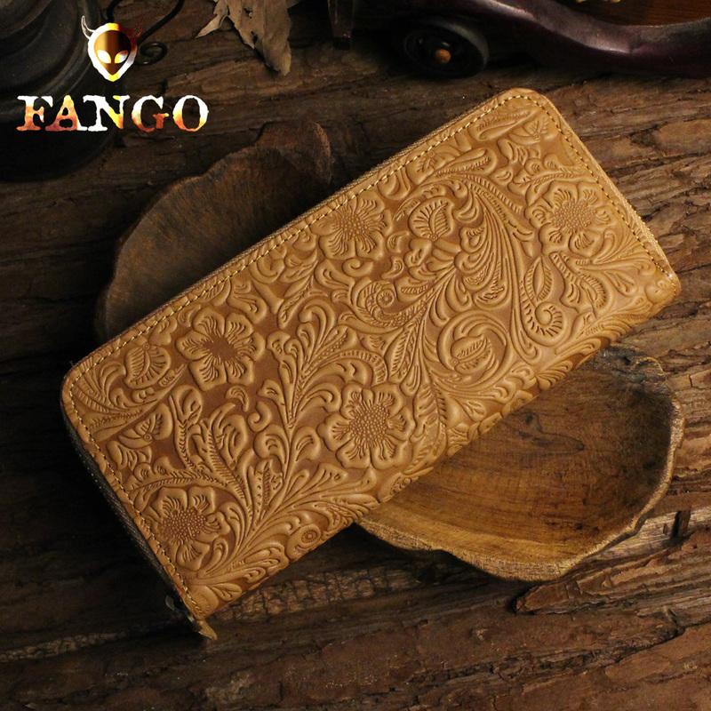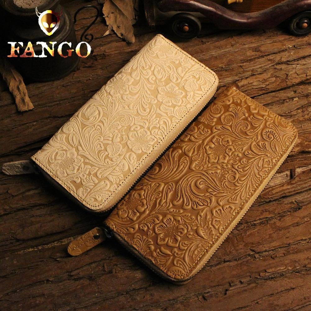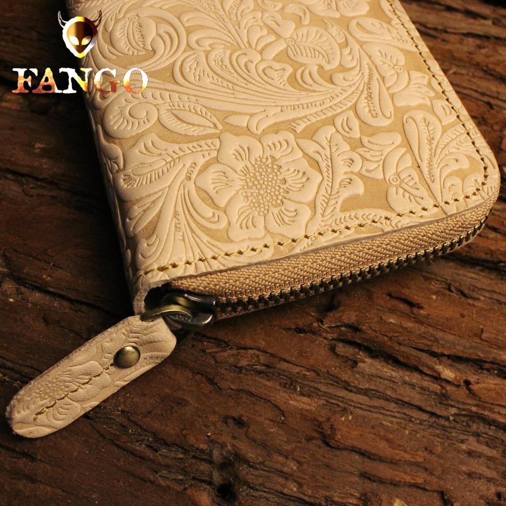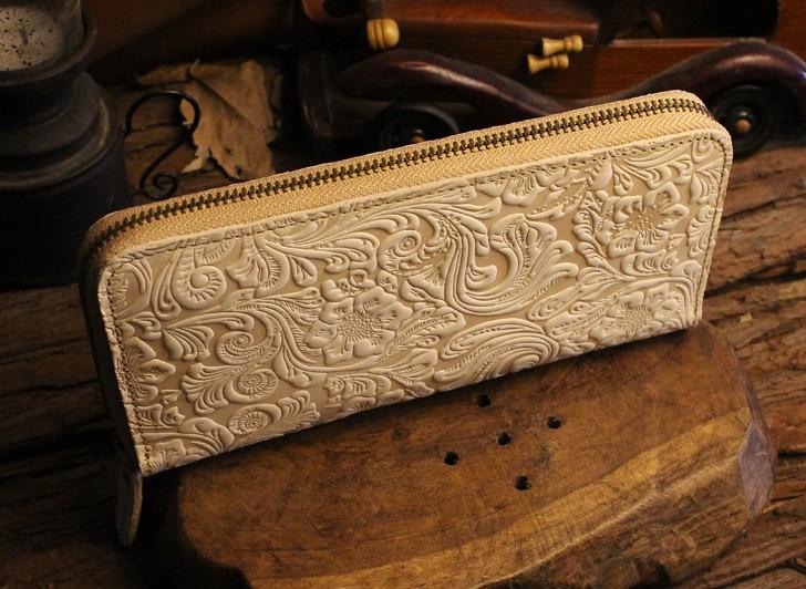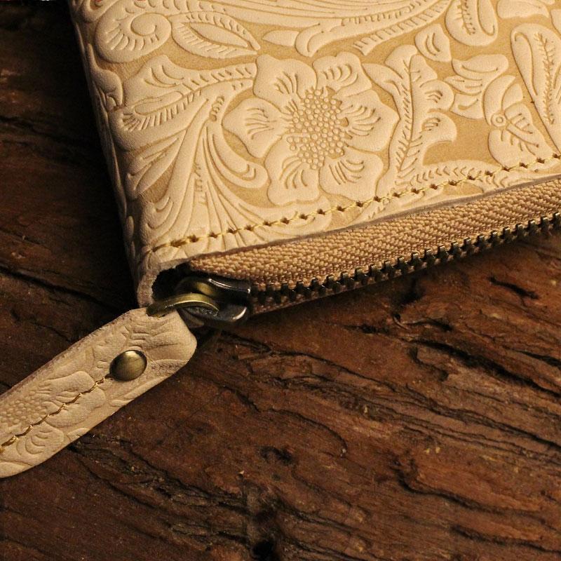 Design: Handmade Leather Floral Mens Cool Zipper Phone Travel Long Wallet Card Holder Card Slim Clutch Wallets for Men