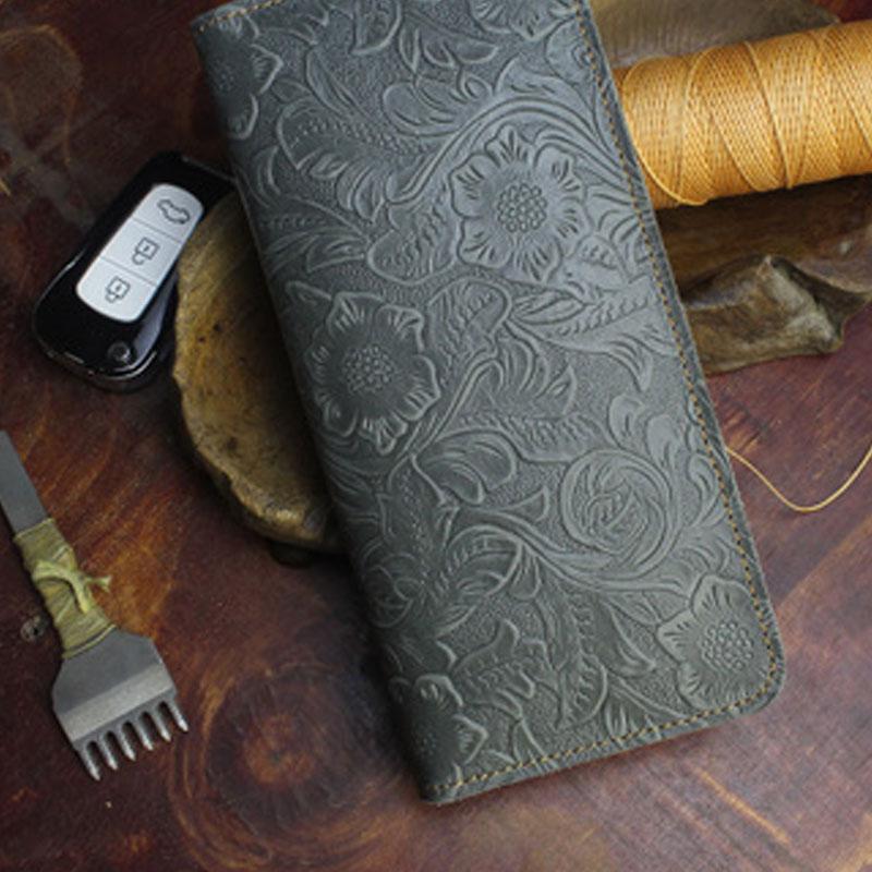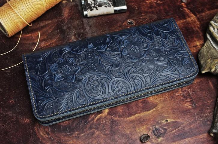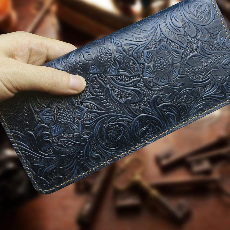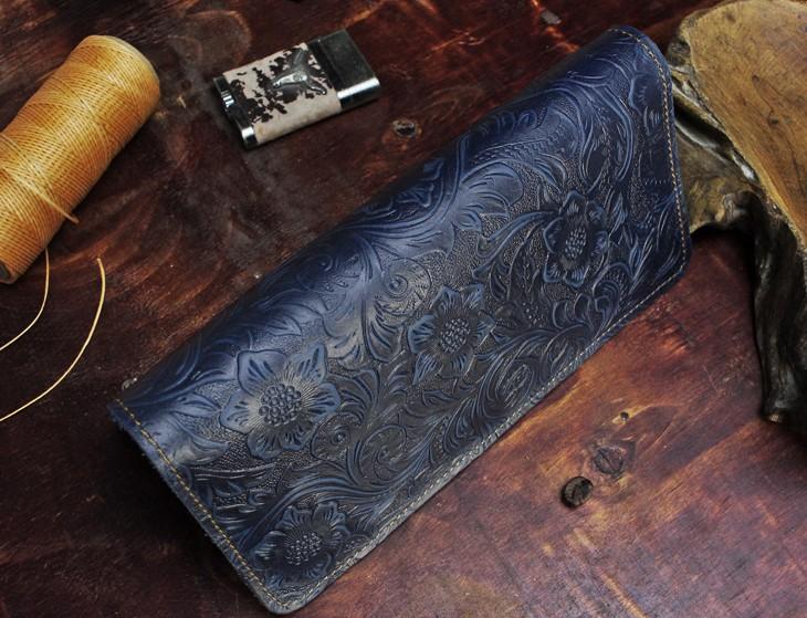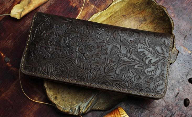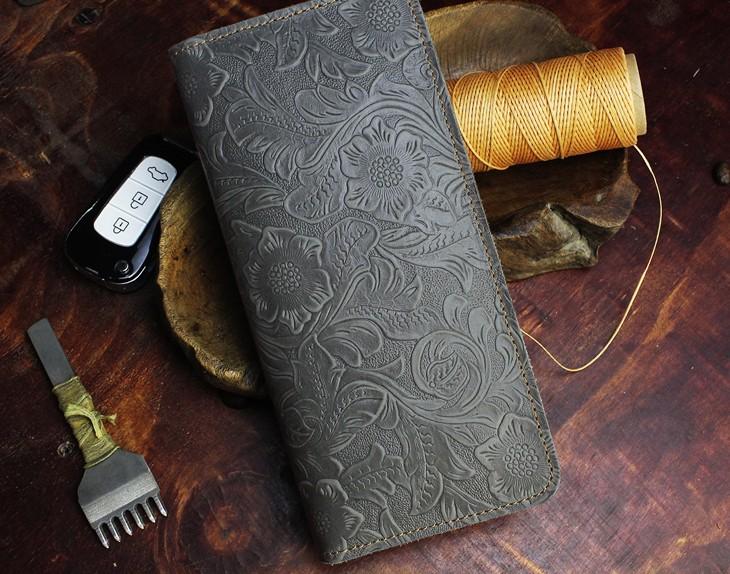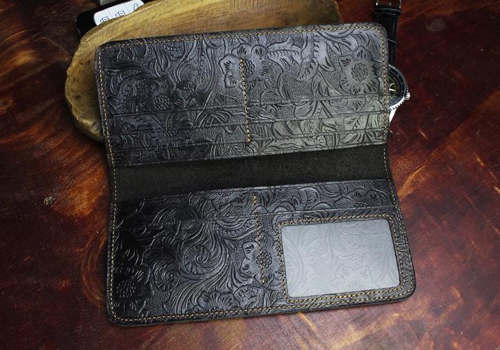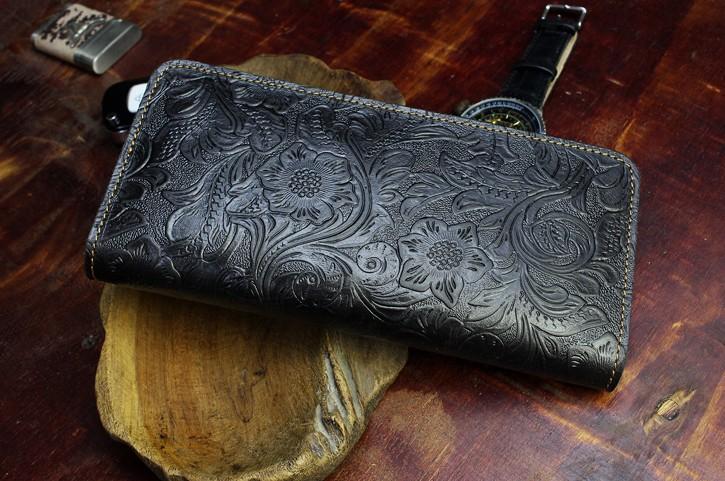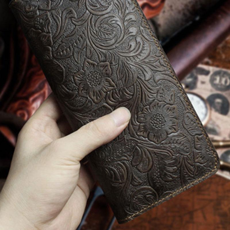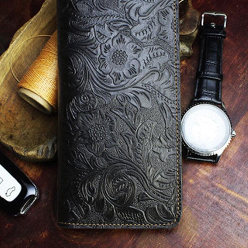 Design: Handmade Leather Floral Mens Cool Travel Long Wallet Card Holder Card Slim Clutch Wallets for Men