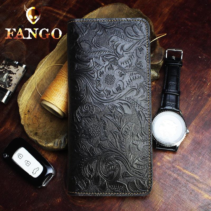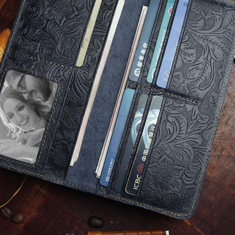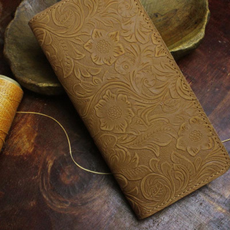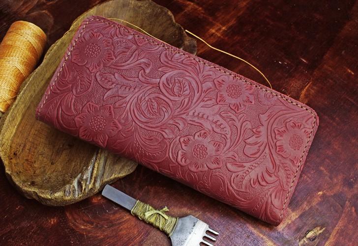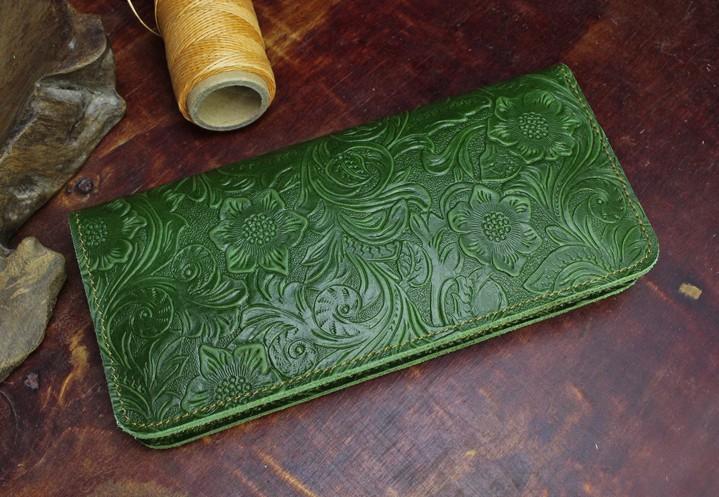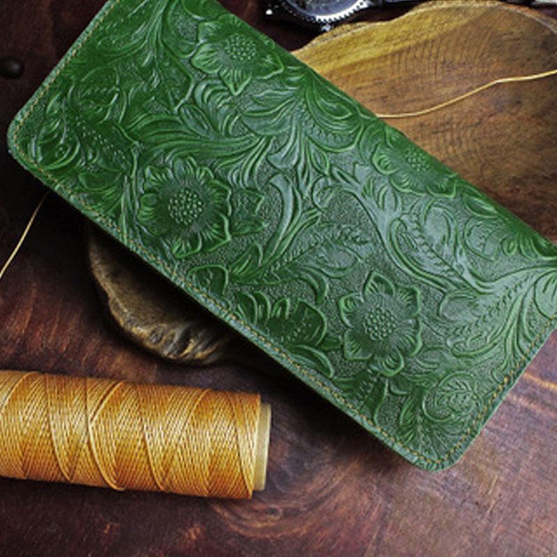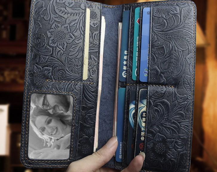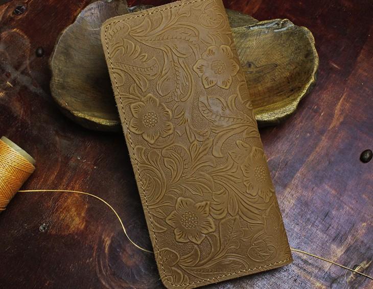 Design: Handmade Leather Floral Mens Cool Travel Long Wallet Card Holder Card Slim Clutch Wallets for Men