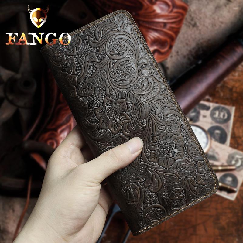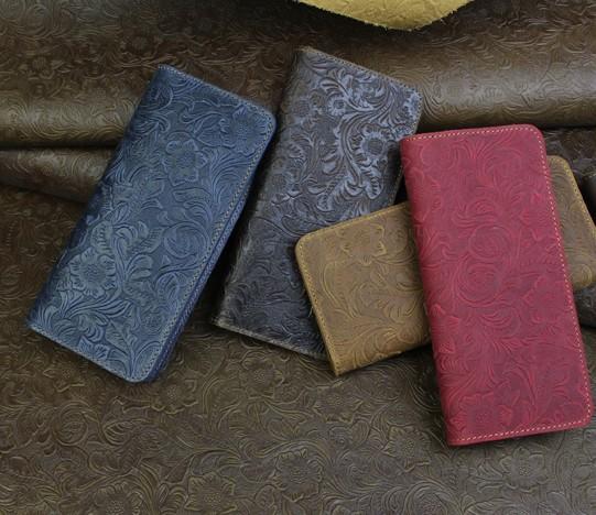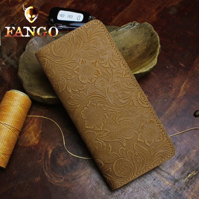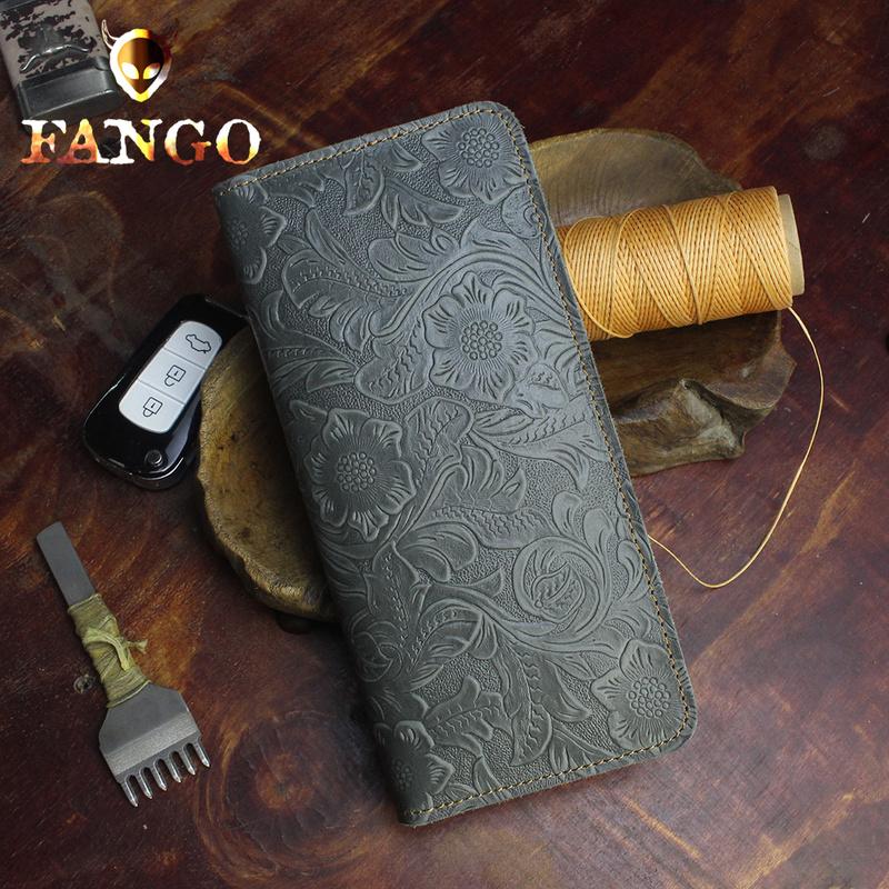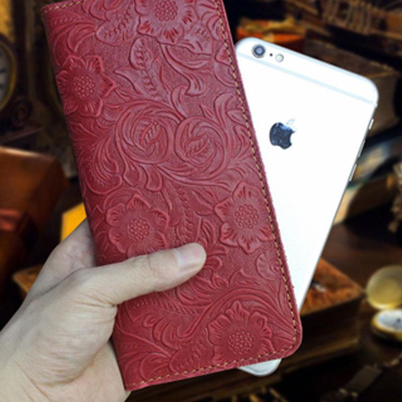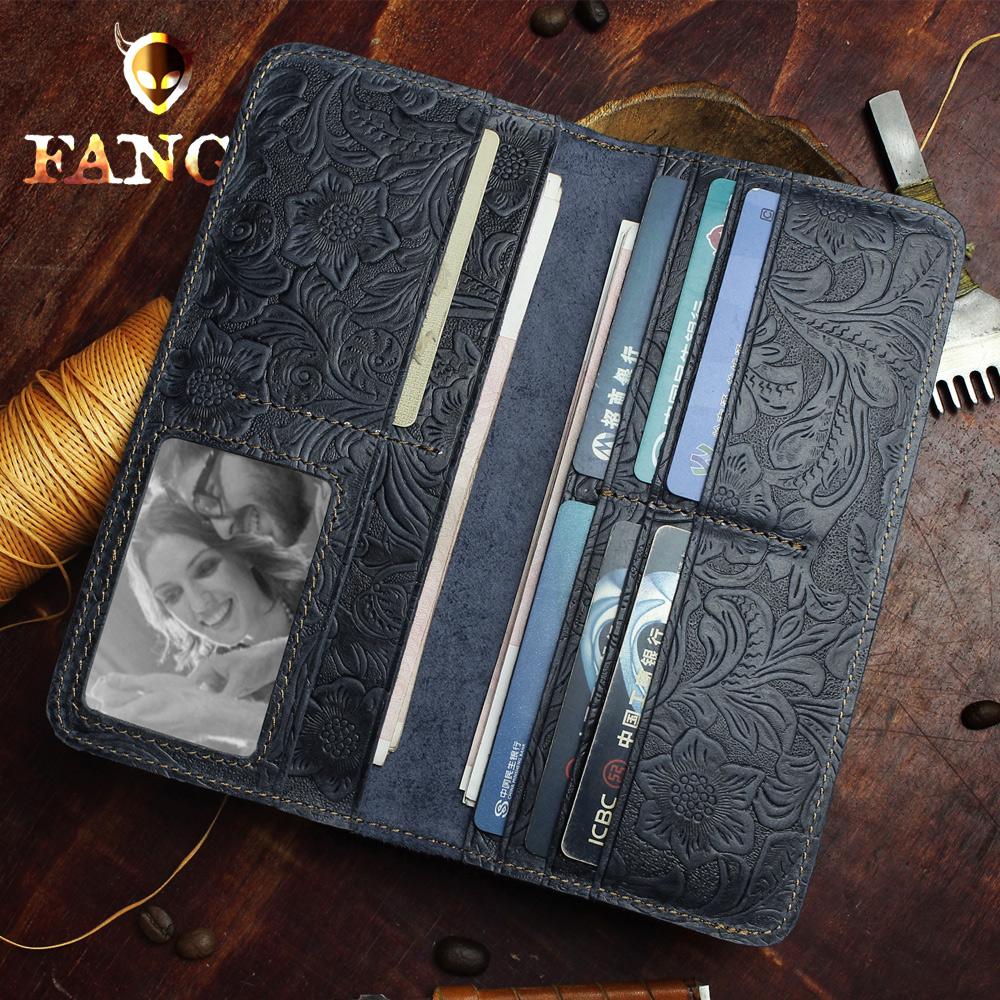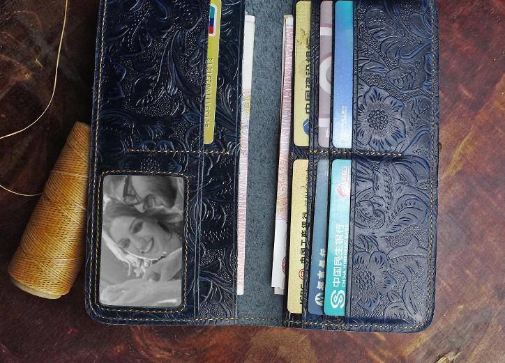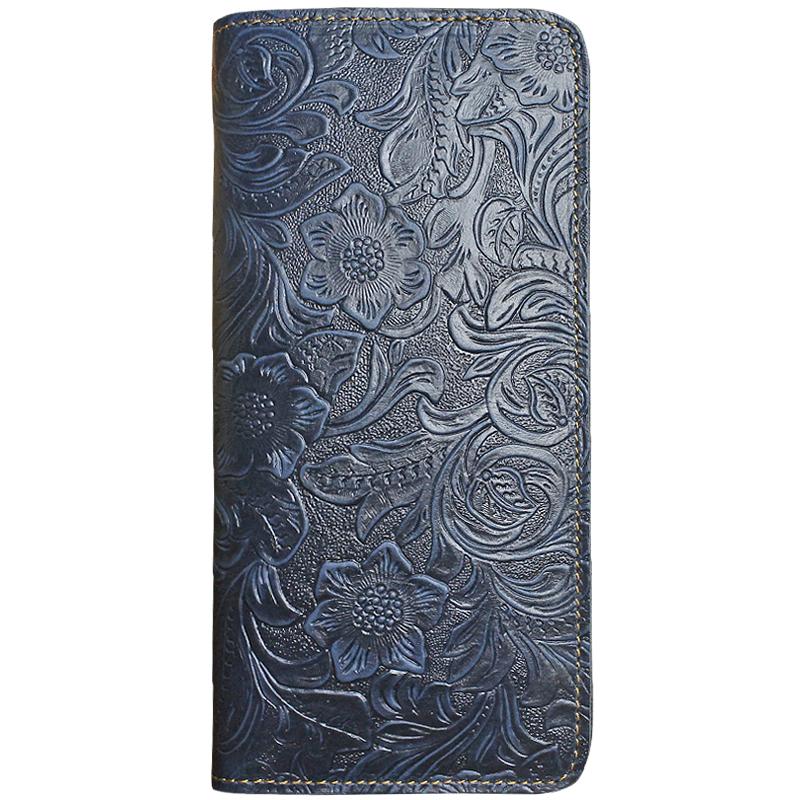 Design: Handmade Leather Floral Mens Cool Travel Long Wallet Card Holder Card Slim Clutch Wallets for Men