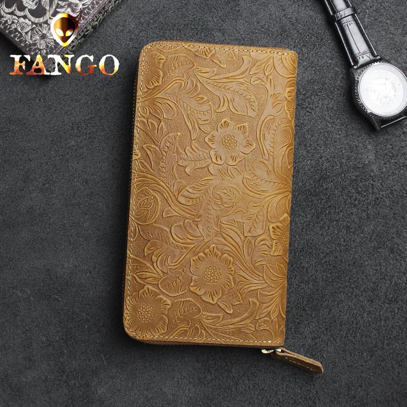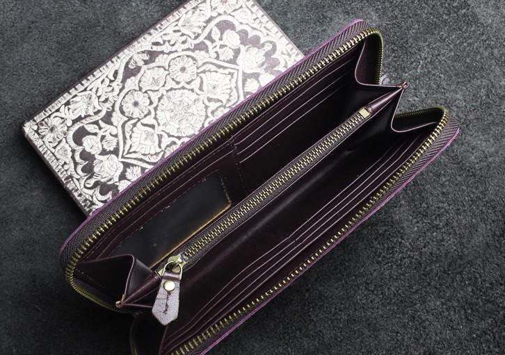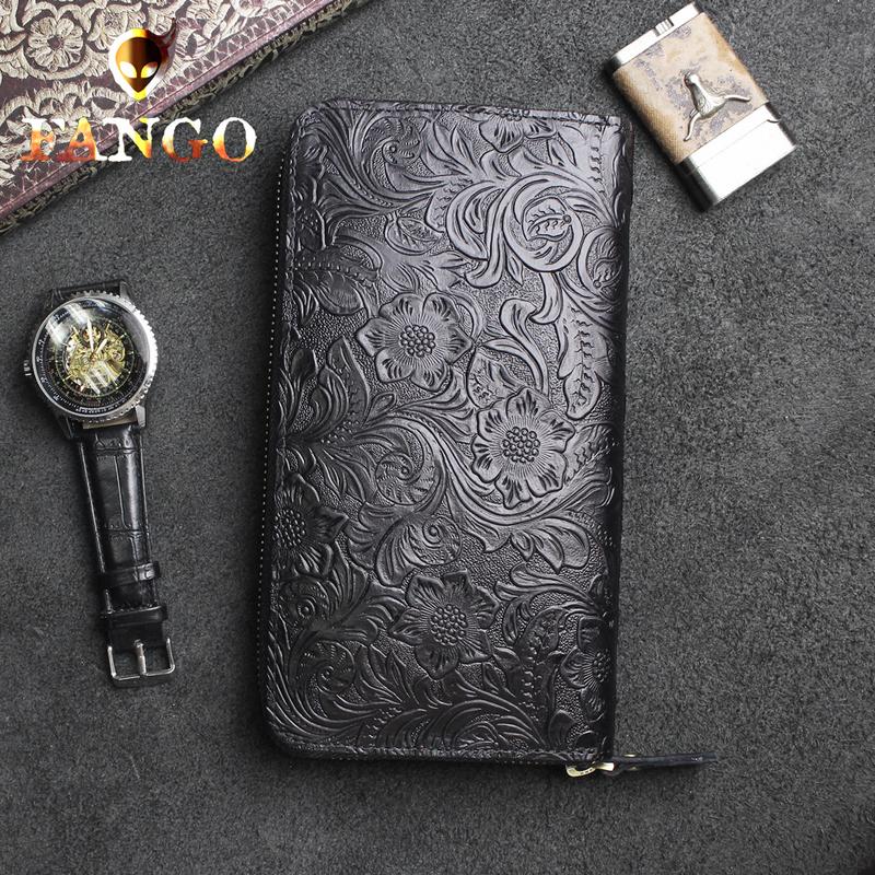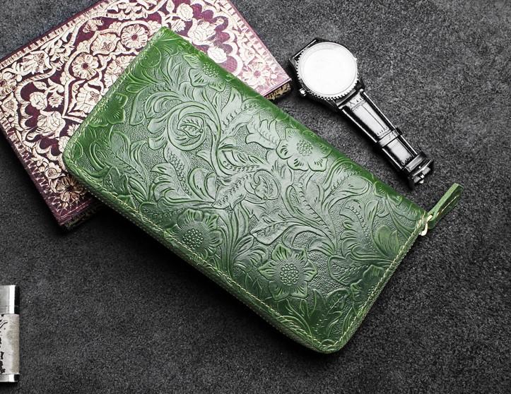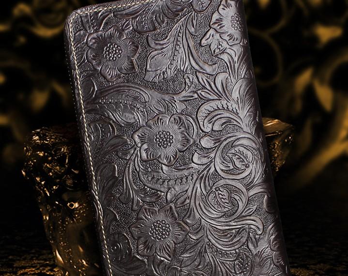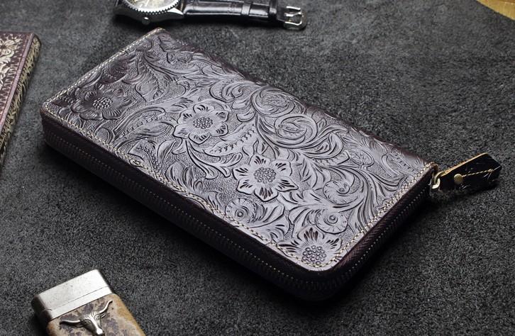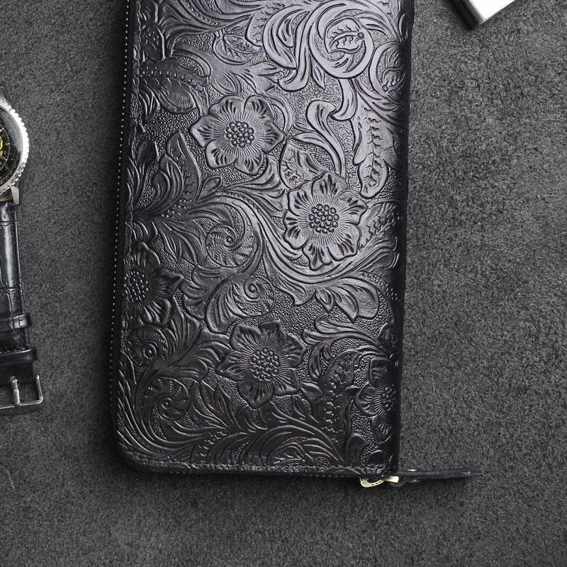 Design: Handmade Leather Floral Mens Cool Travel Long Wallet Card Holder Card Slim Clutch Wallets for Men