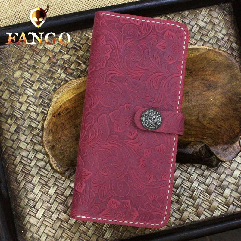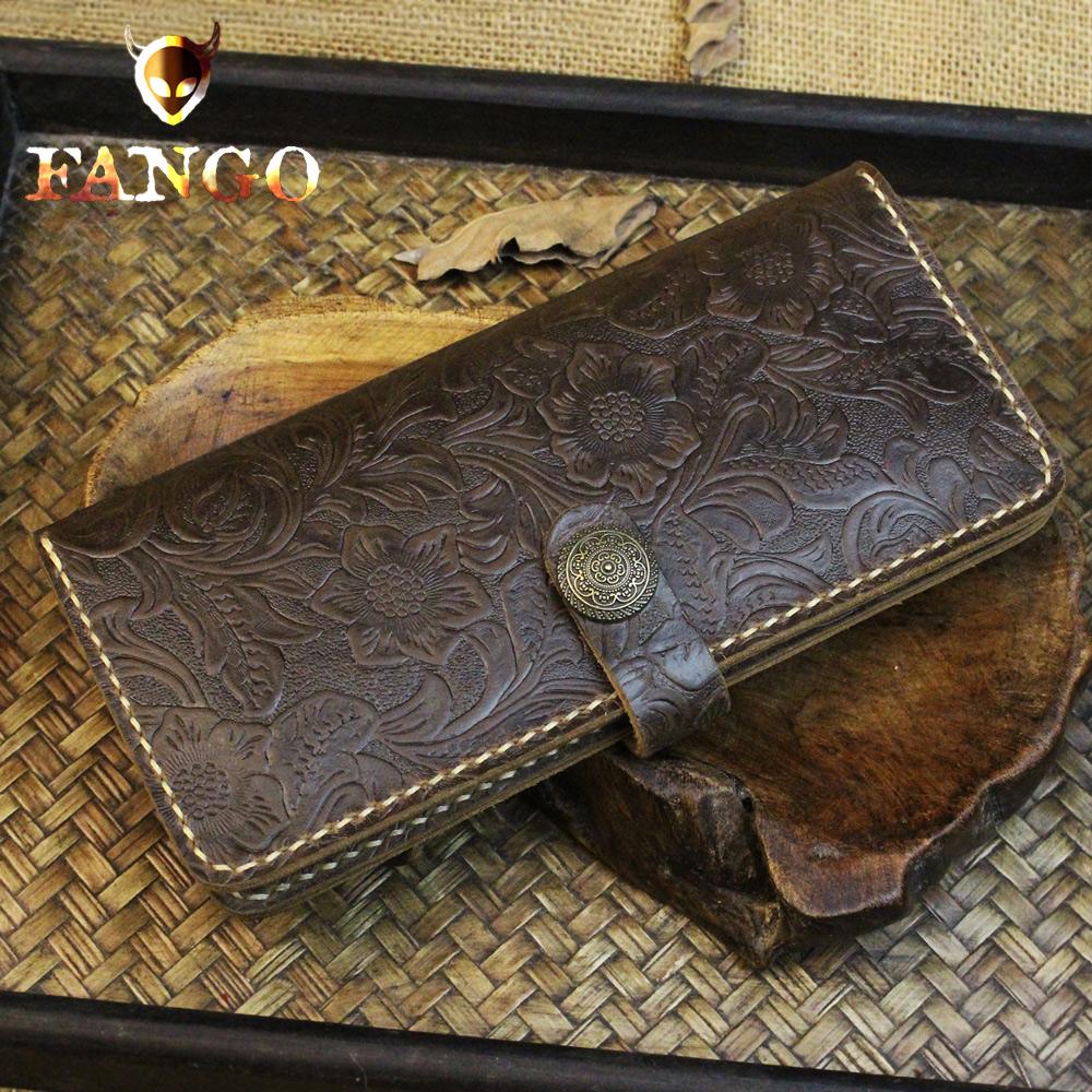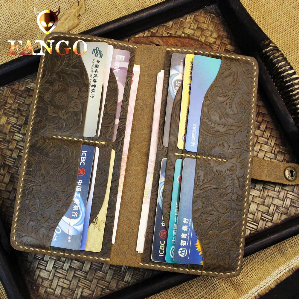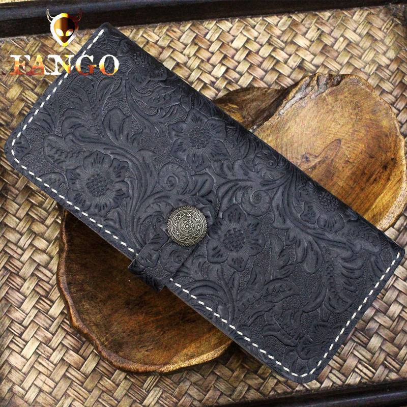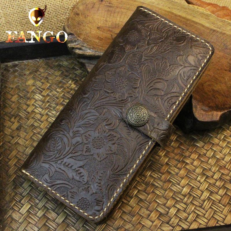Design: Handmade Leather Floral Mens Cool Travel Long Wallet Card Holder Card Slim Clutch Wallets for Men