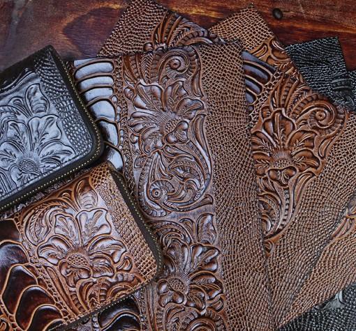 Design: Handmade Leather Floral Mens Cool Zipper Phone Travel Long Wallet Card Holder Card Slim Clutch Wallets for Men