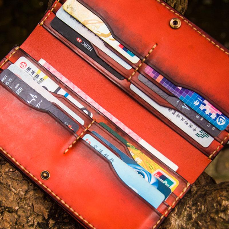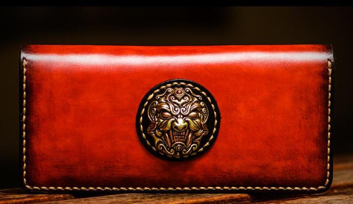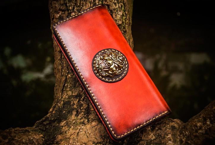 Design: Handmade Leather Men Tooled Cool Leather Wallet Long Phone Wallets for Men