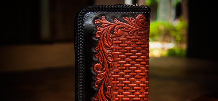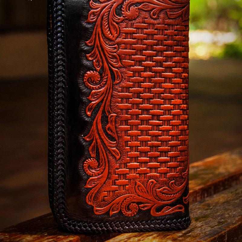 Style: Handmade Leather Men Tooled Eagle Cool Leather Wallet Long Phone Clutch Wallets for Men