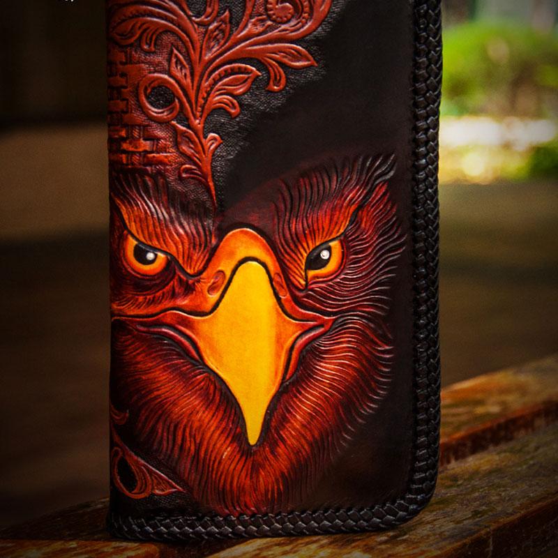 Design: Handmade Leather Men Tooled Eagle Cool Leather Wallet Long Phone Clutch Wallets for Men
