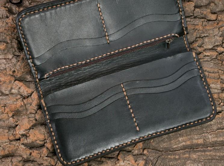 Style: Handmade Leather Men Tooled Skull Halley Cool Leather Wallet Long Phone Wallets for Men