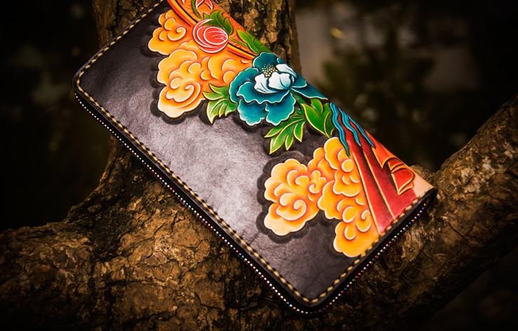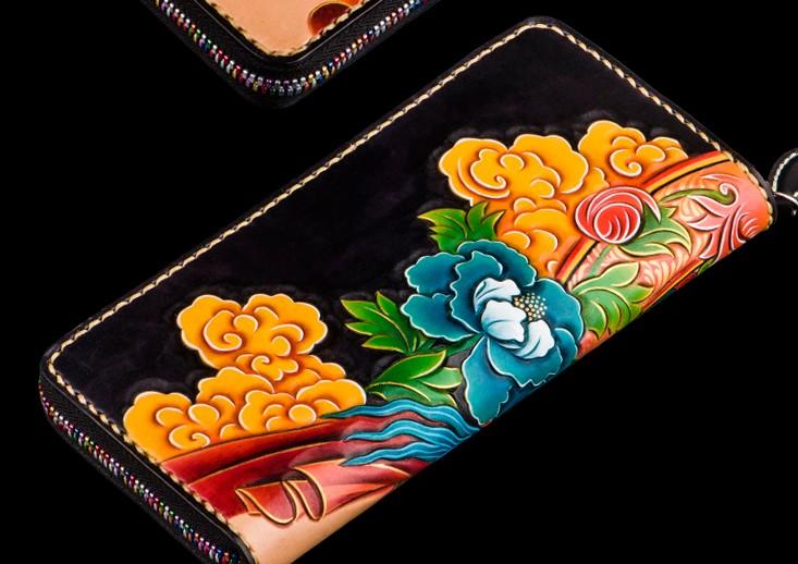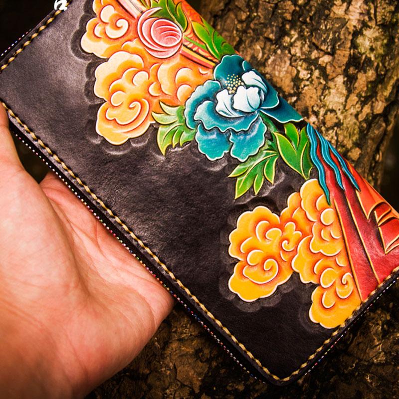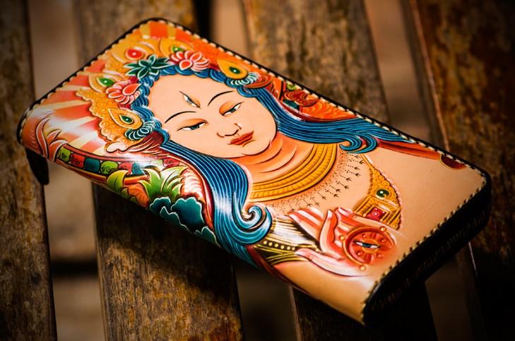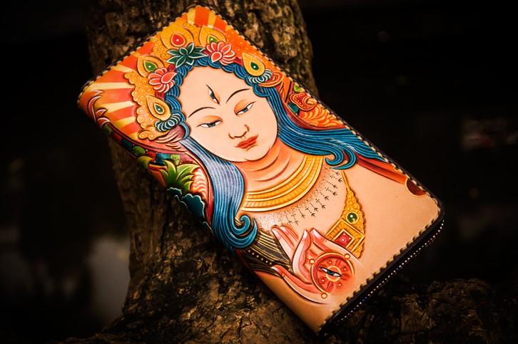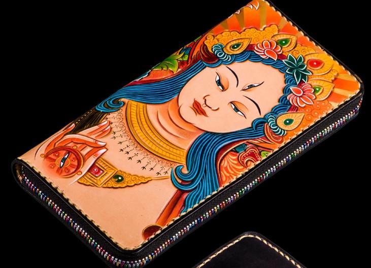 Design: Handmade Leather Men Tooled White Tara Cool Leather Wallet Long Phone Clutch Wallets for Men