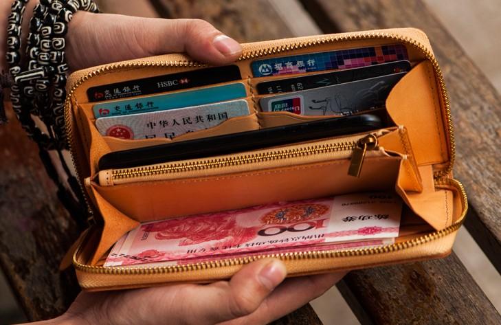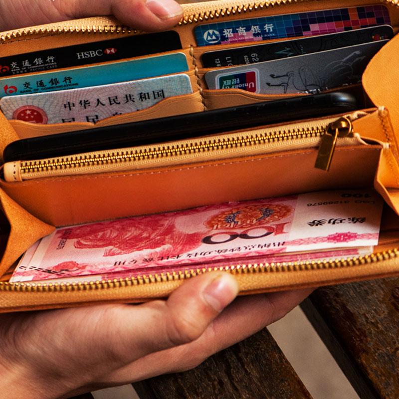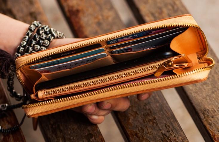 Slots: 2 full size bill slot, 12 card holders, 1 zipper slot
