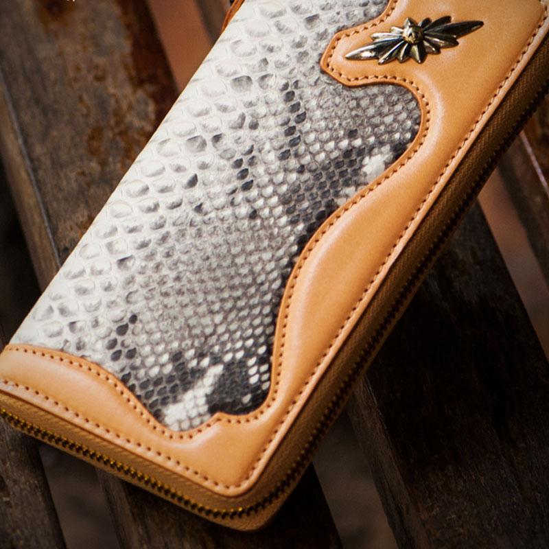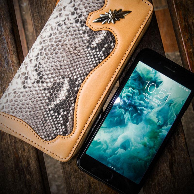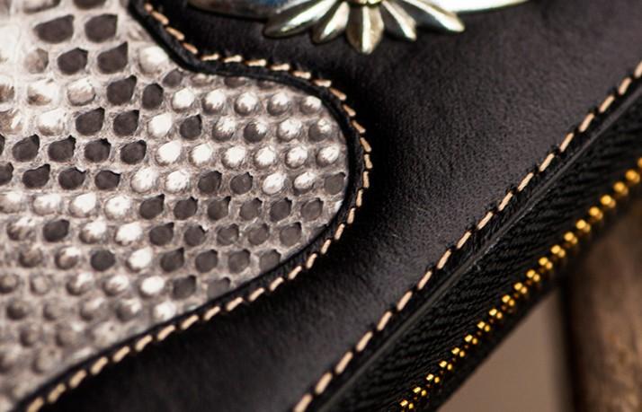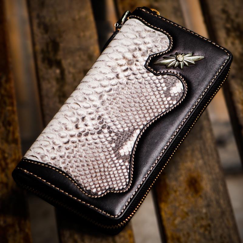 Design: Handmade Leather Mens Chain Biker Wallet Cool Leather Wallet Long Clutch Wallets for Men