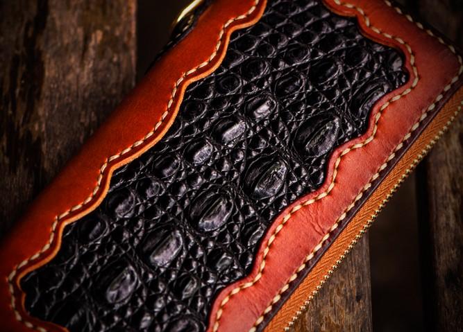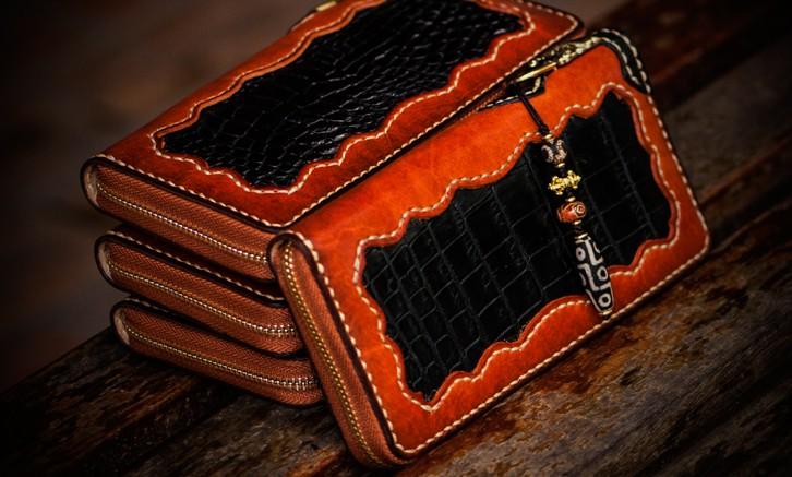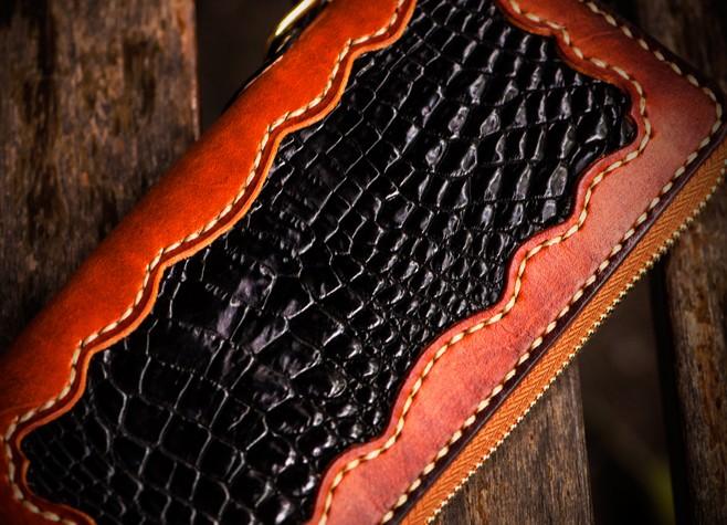 Design: Handmade Leather Mens Chain Biker Wallet Cool Leather Wallet Long Clutch Wallets for Men