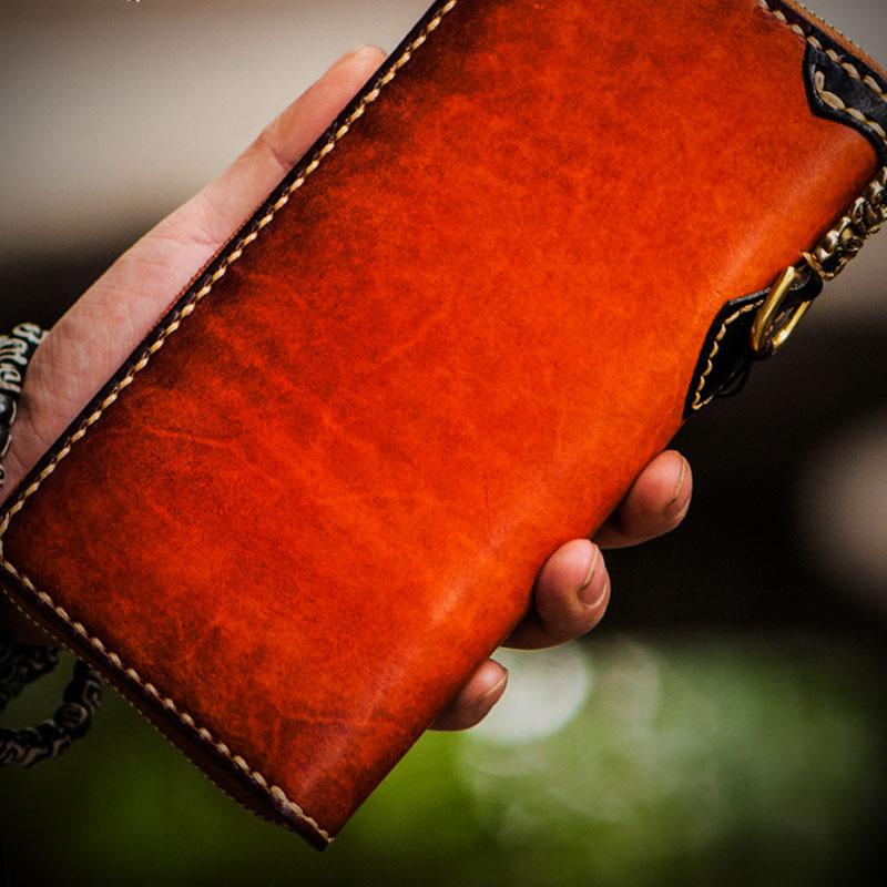 Style: Handmade Leather Mens Chain Biker Wallet Cool Leather Wallet Long Clutch Wallets for Men