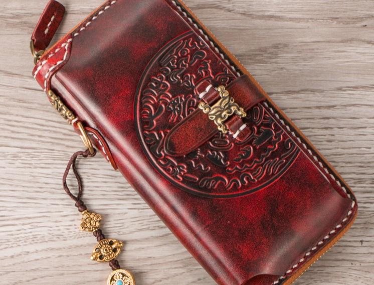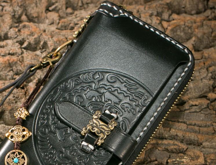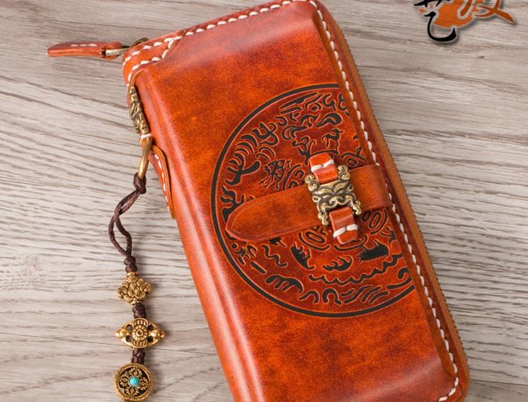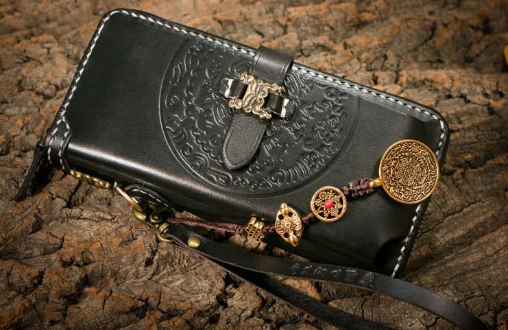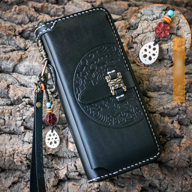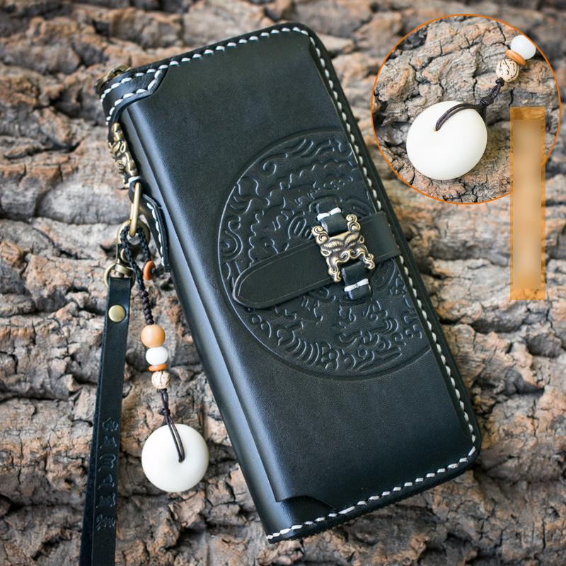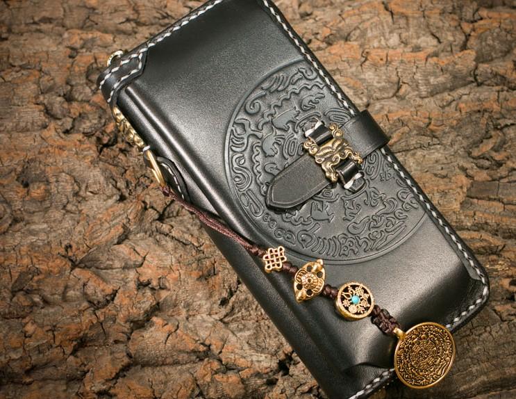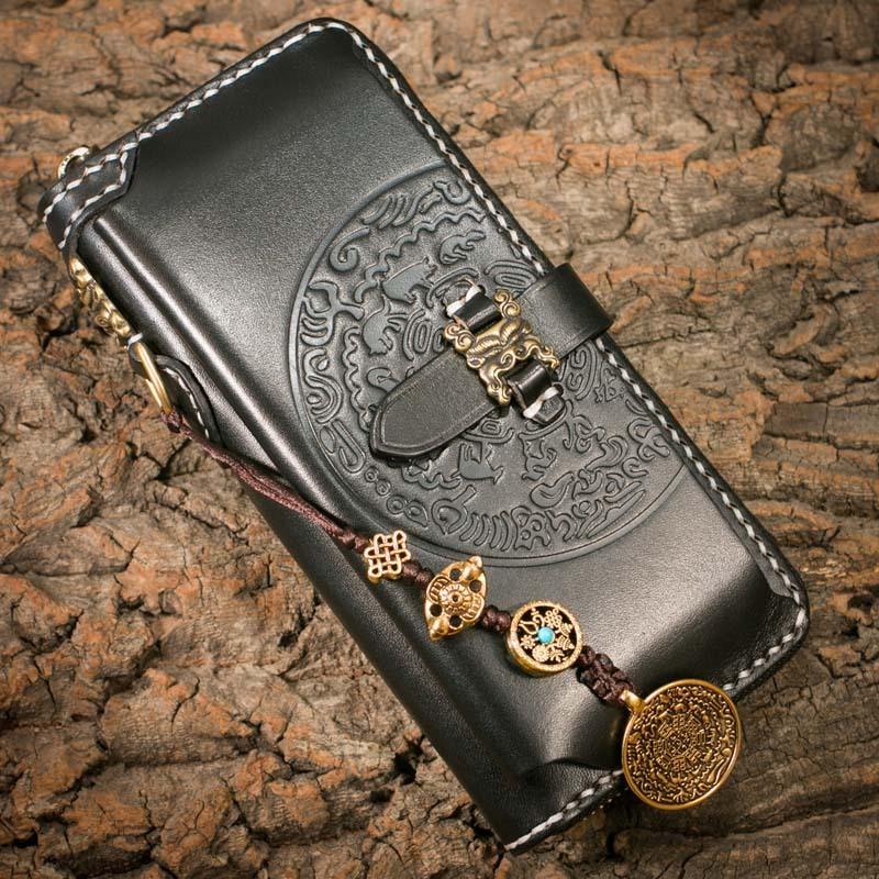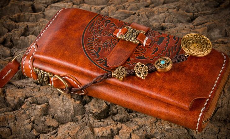 Handmade Leather Mens Chain Biker Wallet Cool Leather Wallet Long Phone Wallets for Men