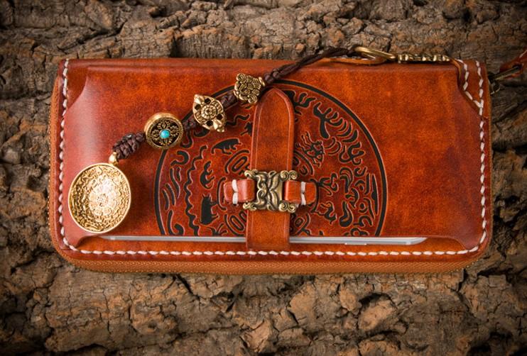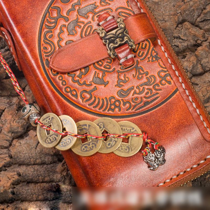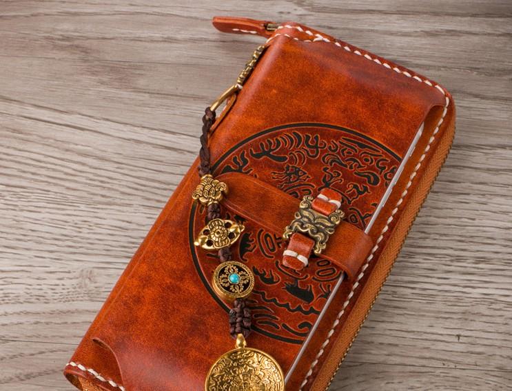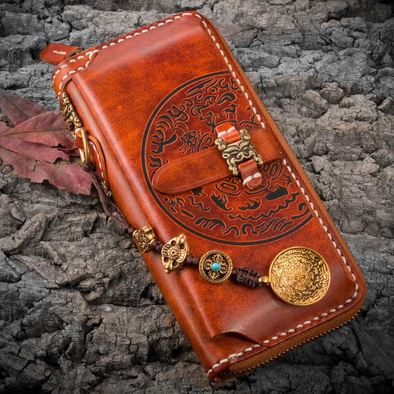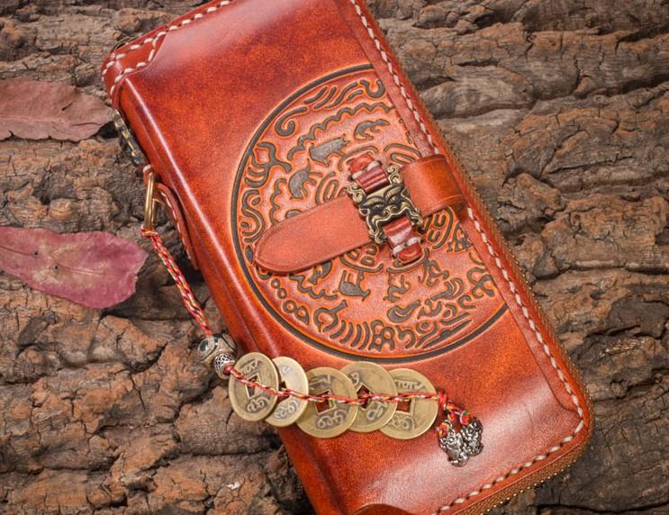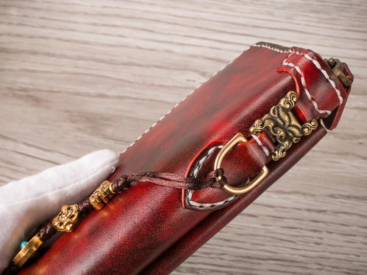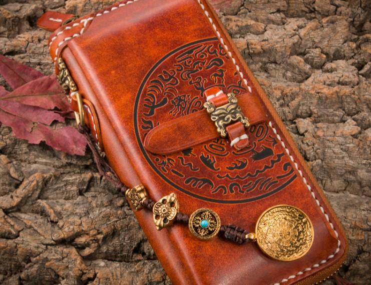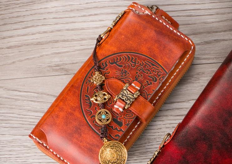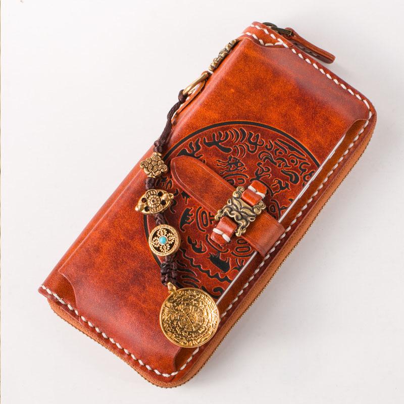 Handmade Leather Mens Chain Biker Wallet Cool Leather Wallet Long Phone Wallets for Men