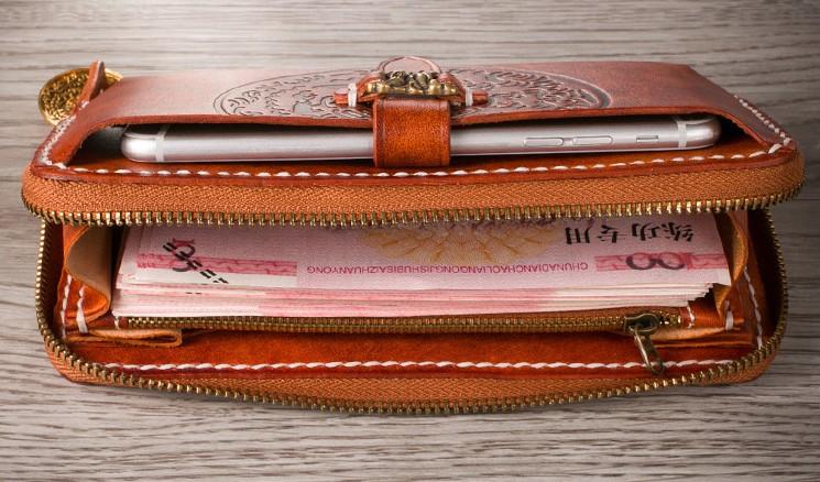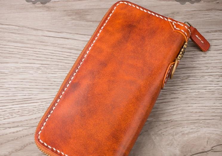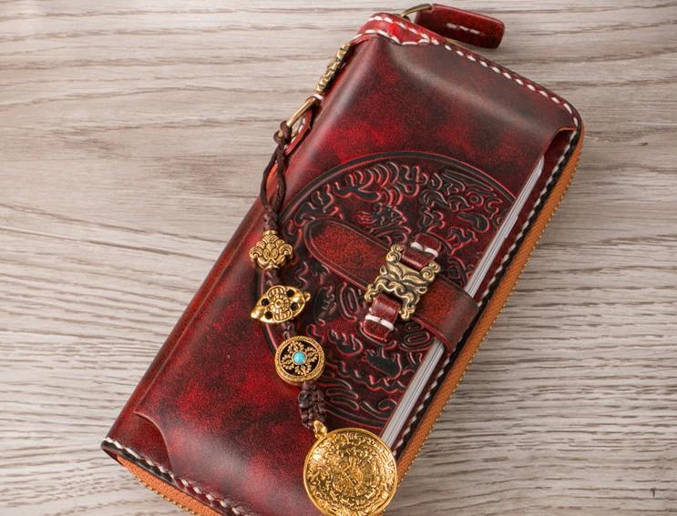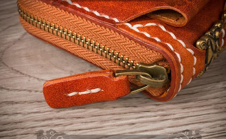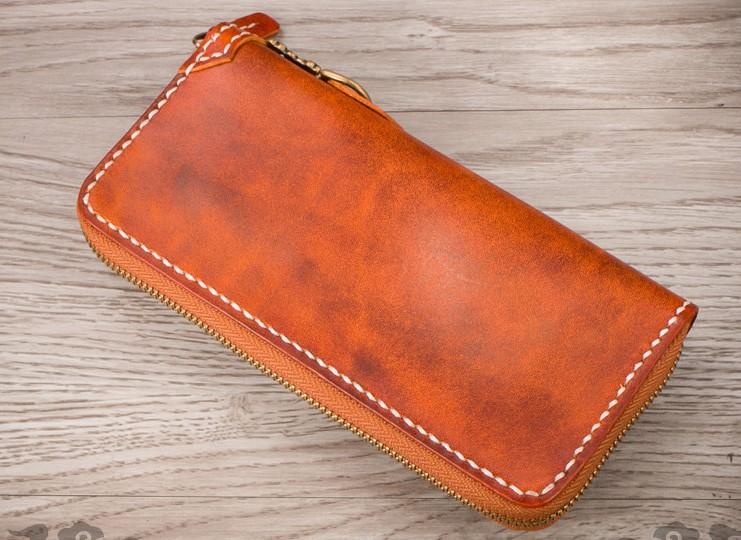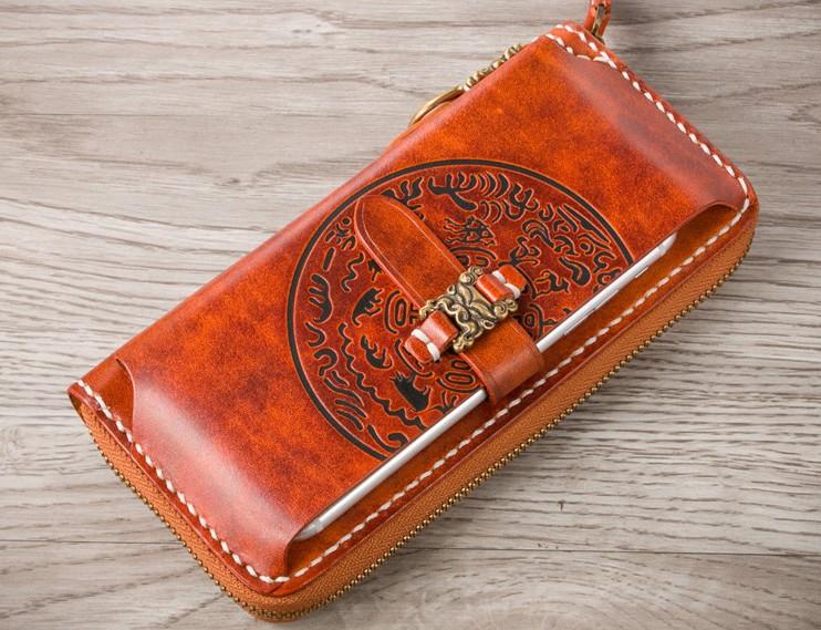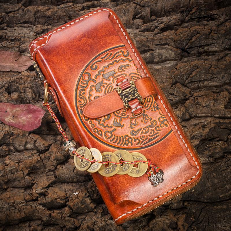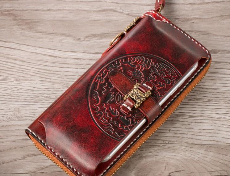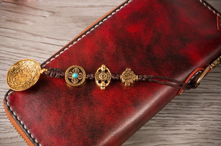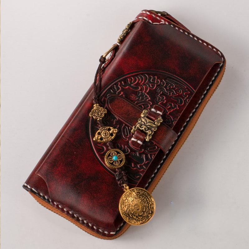 Handmade Leather Mens Chain Biker Wallet Cool Leather Wallet Long Phone Wallets for Men