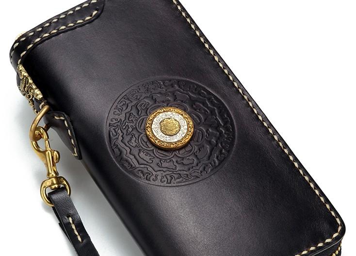 Style: Handmade Leather Mens Chain Tibetan Biker Wallet Cool Leather Wallet Small Wallets for Men