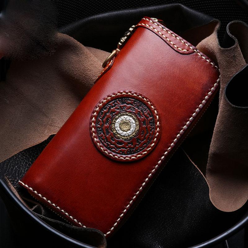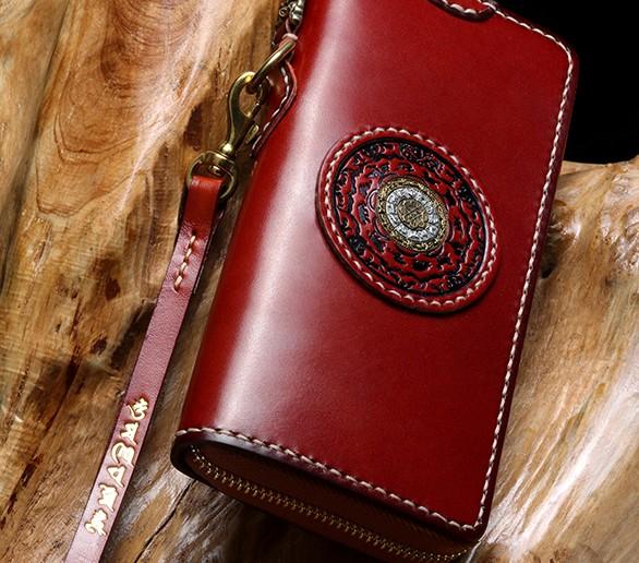 Design: Handmade Leather Mens Tibetan Chain Biker Wallet Cool Leather Wallet Small Wallets for Men