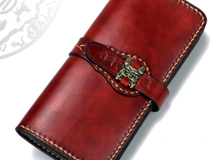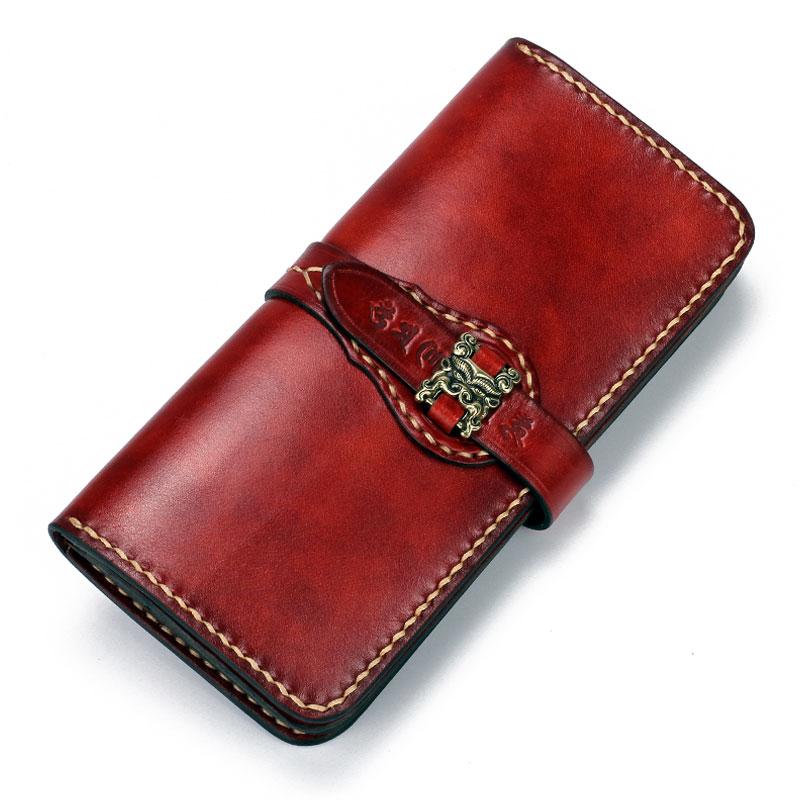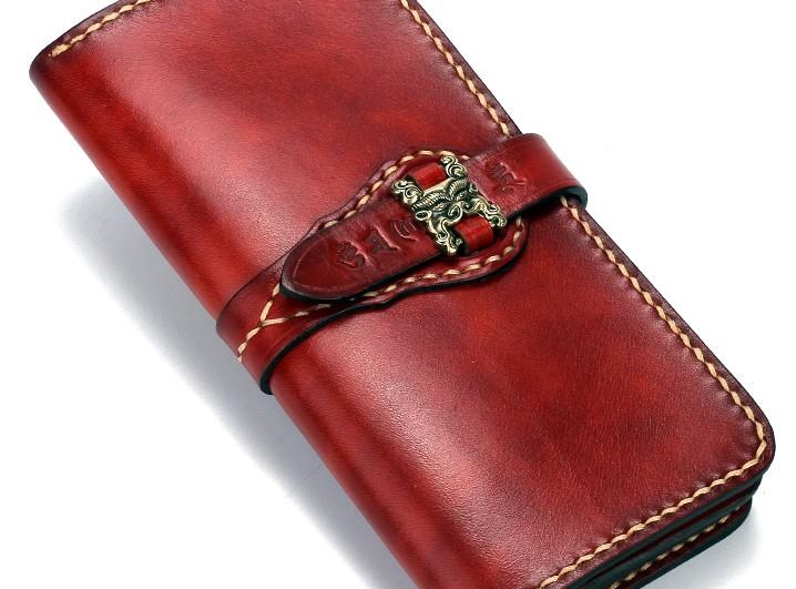 Design: Handmade Leather Mens Clutch Cool Leather Wallet Long Phone Wallets for Men