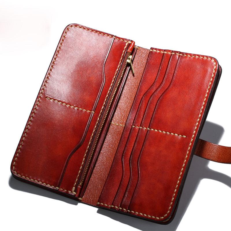 Style: Handmade Leather Mens Clutch Cool Leather Wallet Long Phone Wallets for Men