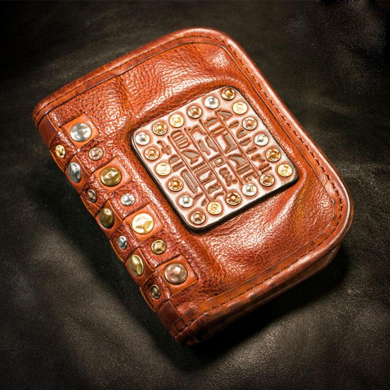 Design: Handmade Leather Mens Chain Biker Wallet Cool Leather Wallet Small Wallets for Men