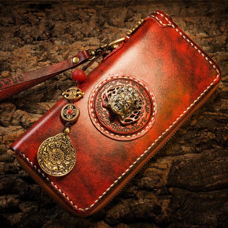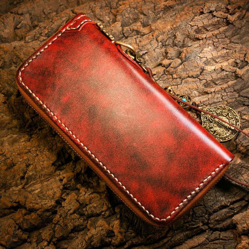 Design: Handmade Leather Mens Chain Biker Wallet Cool Leather Wallet Small Wallets for Men