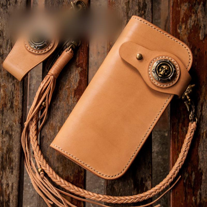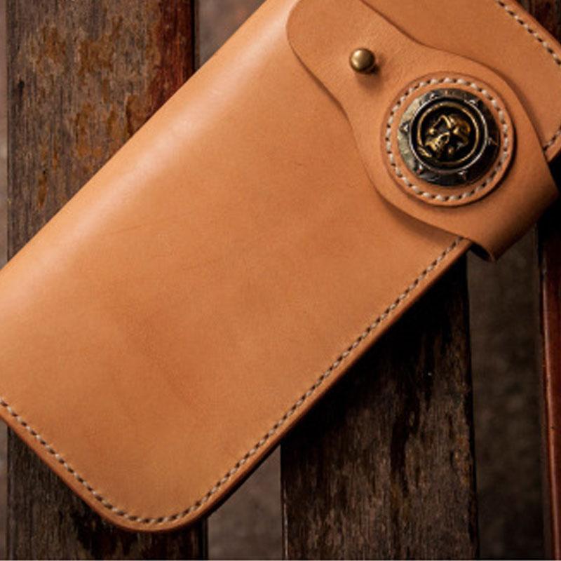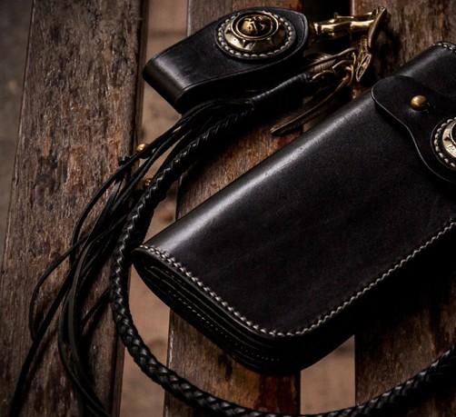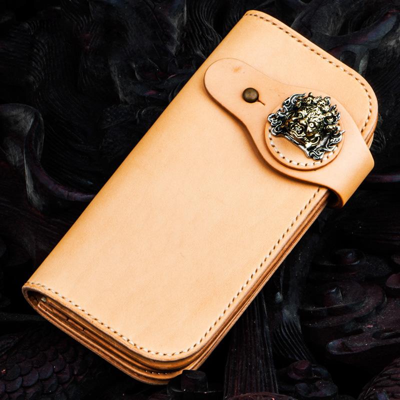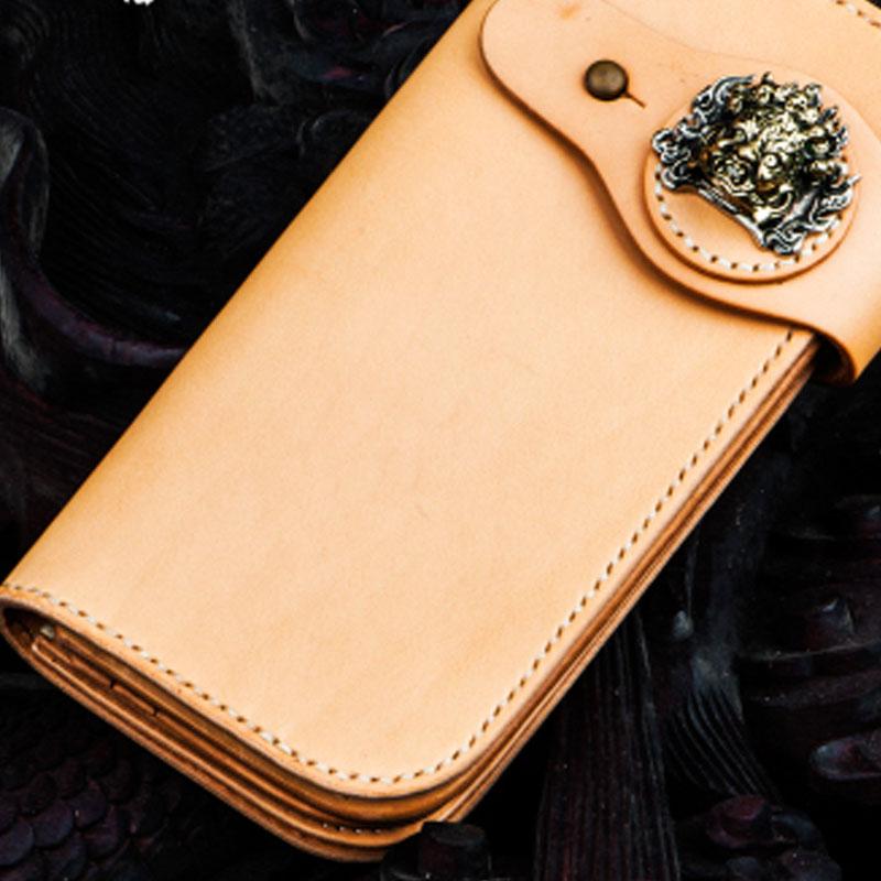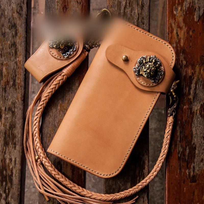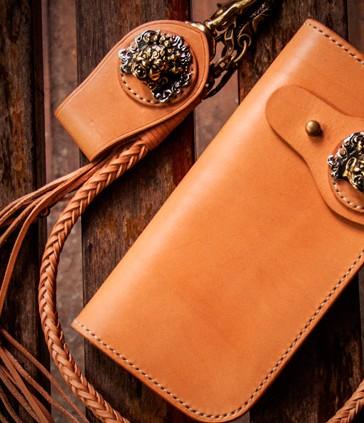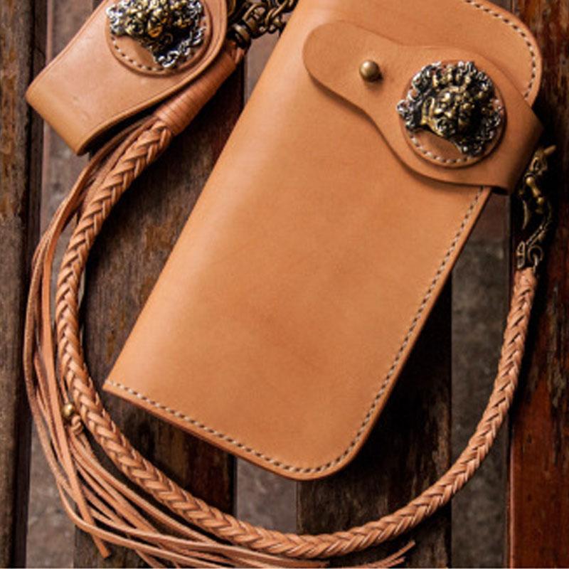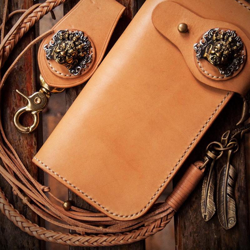 Design: Handmade Leather Chinese Lion Mens Chain Biker Wallet Cool Leather Wallet With Chain Wallets for Men