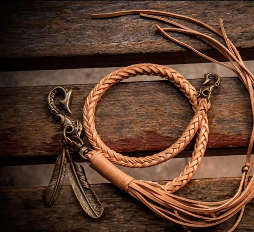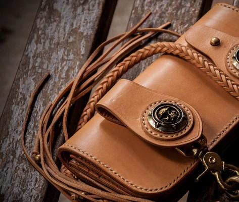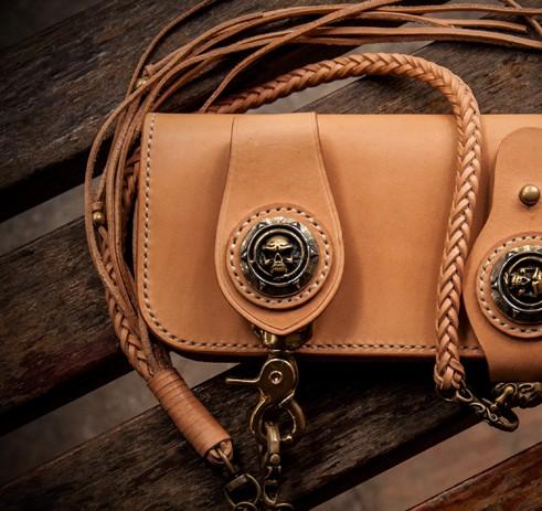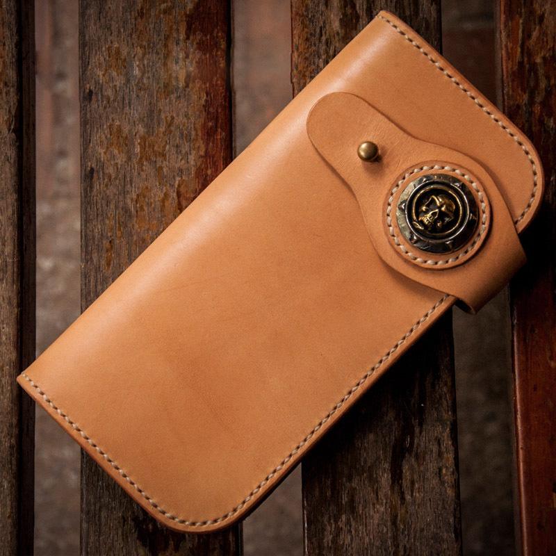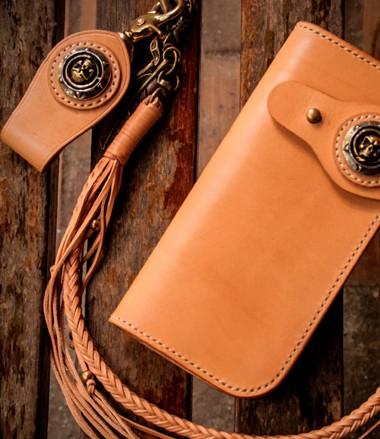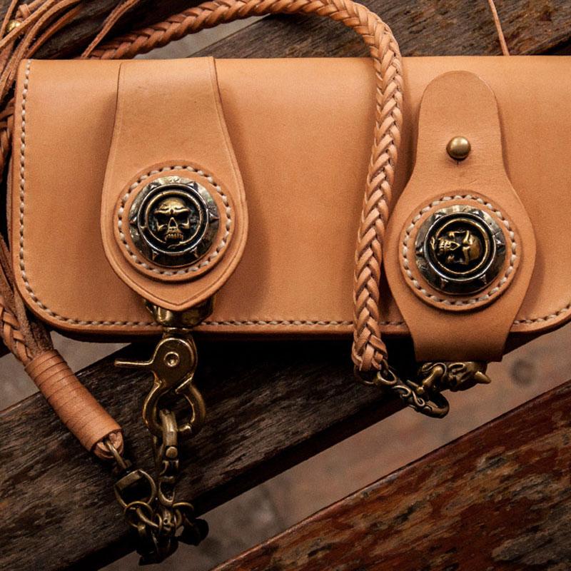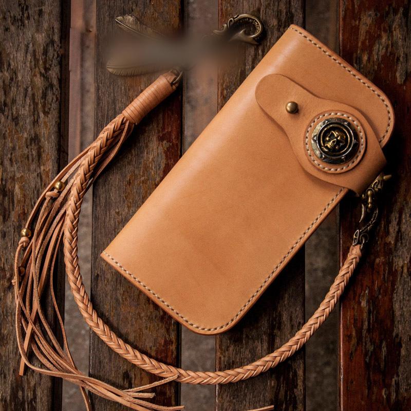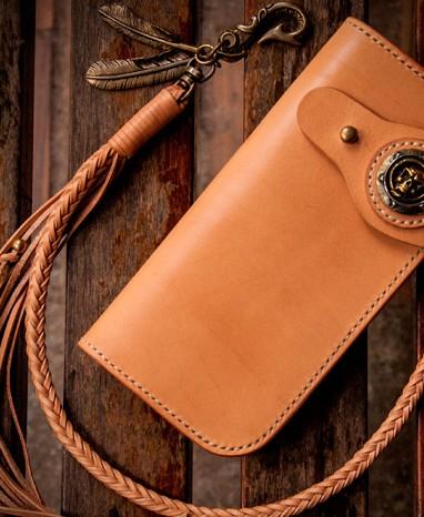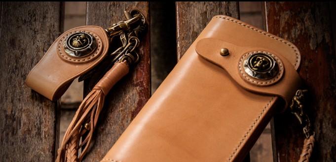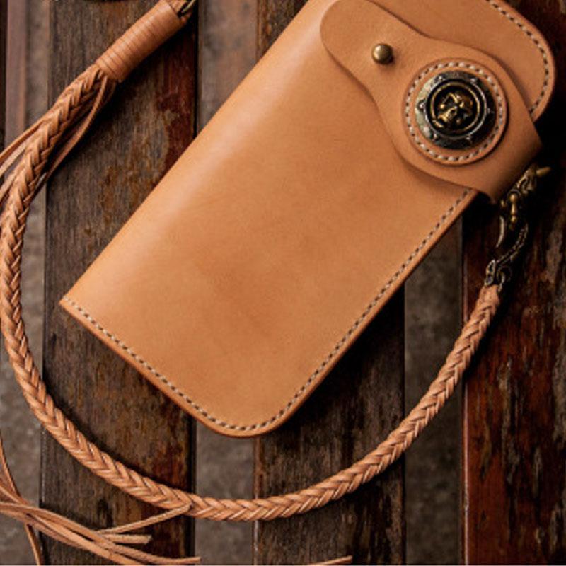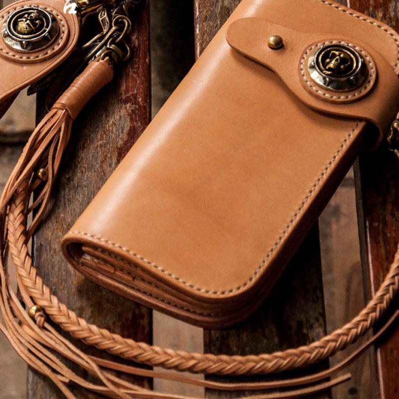Design: Handmade Leather Chinese Lion Mens Chain Biker Wallet Cool Leather Wallet With Chain Wallets for Men