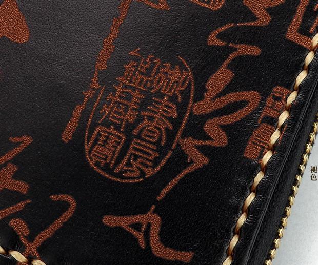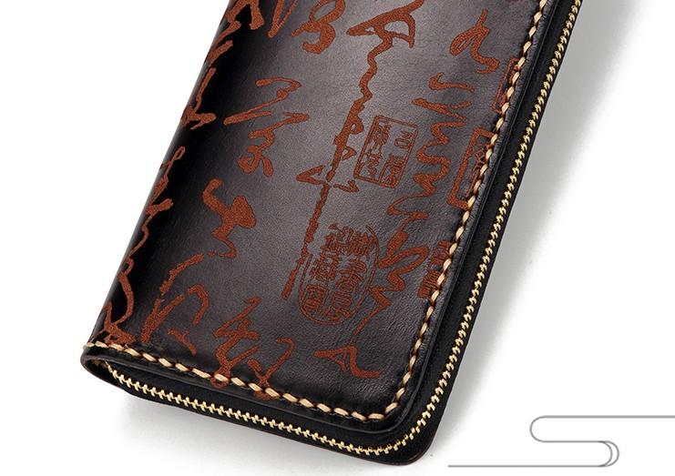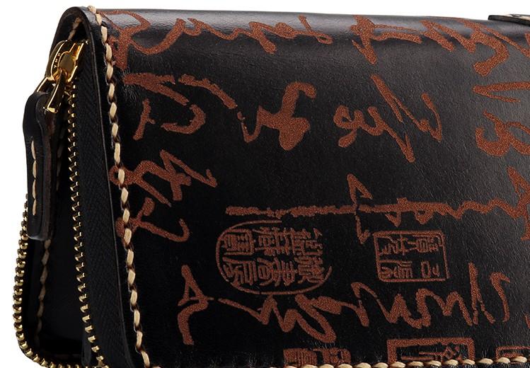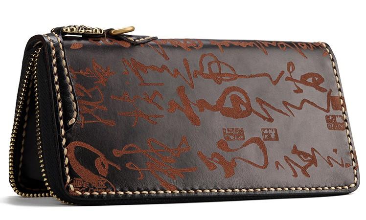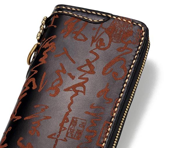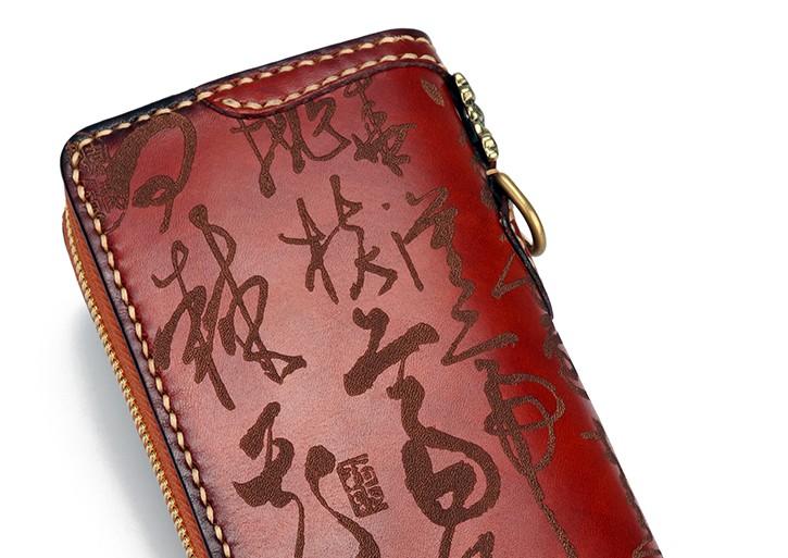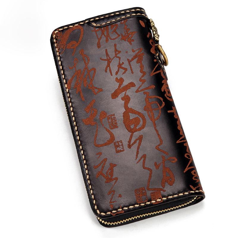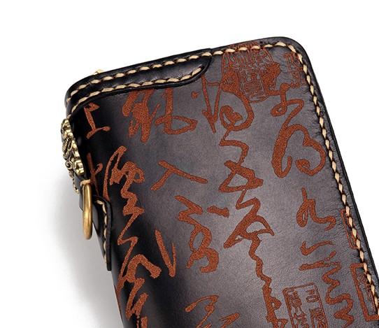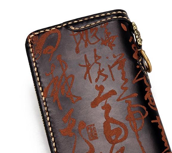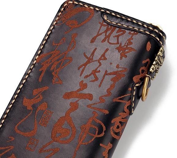 Design: Handmade Leather Mens Chain Chinese Handwriting Biker Wallet Cool Leather Wallet Long Phone Wallets for Men