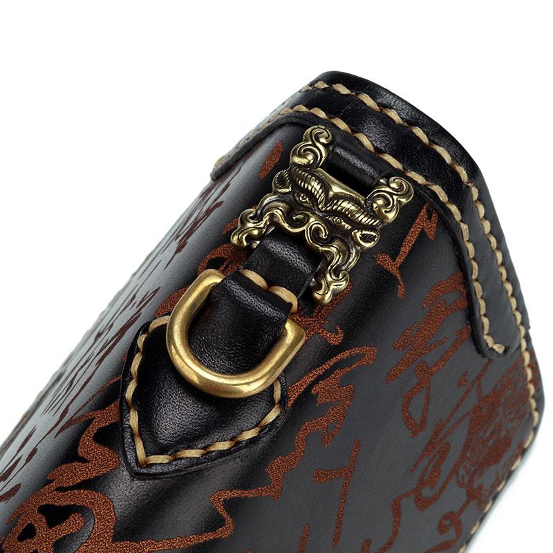 Style: Handmade Leather Mens Chain Chinese Handwriting Biker Wallet Cool Leather Wallet Long Phone Wallets for Men