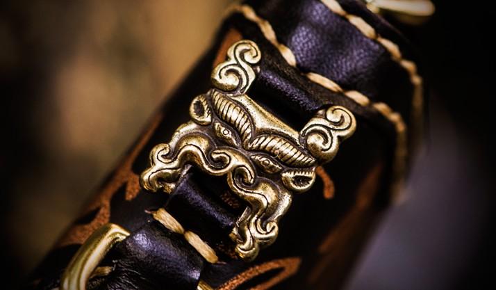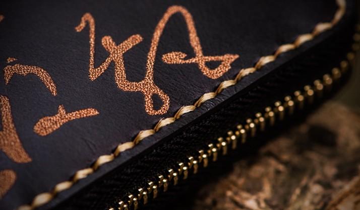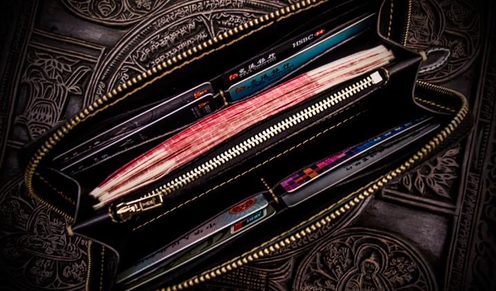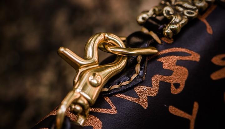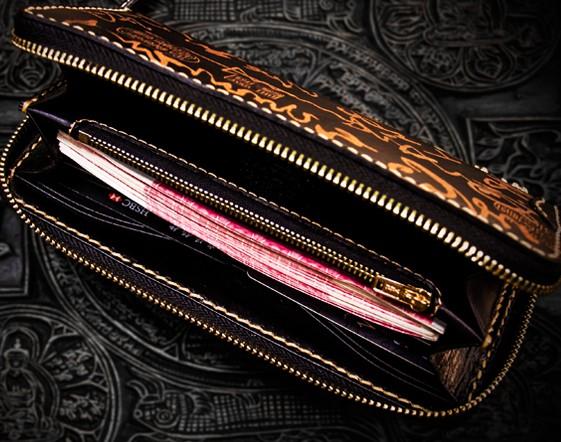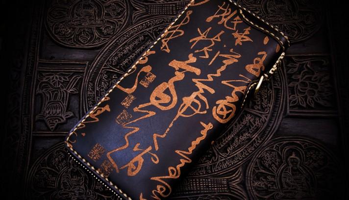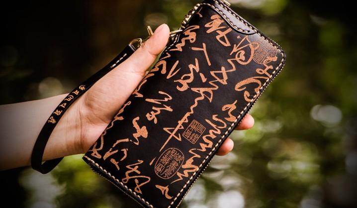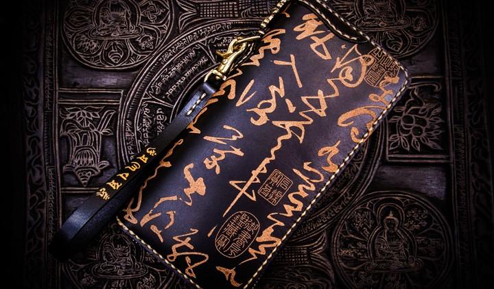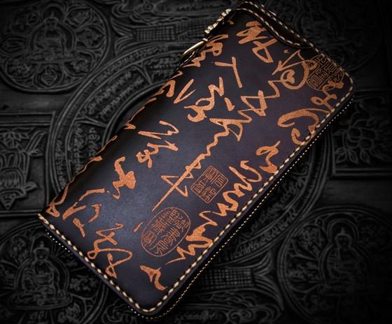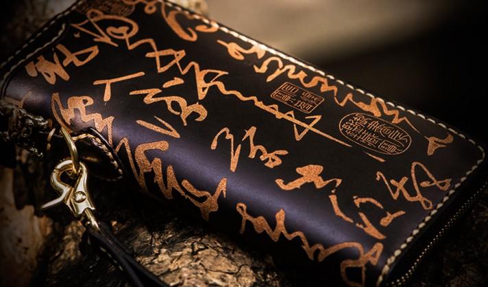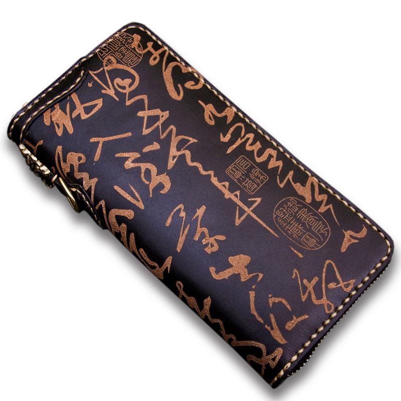 Design: Handmade Leather Mens Chain Chinese Handwriting Biker Wallet Cool Leather Wallet Long Phone Wallets for Men