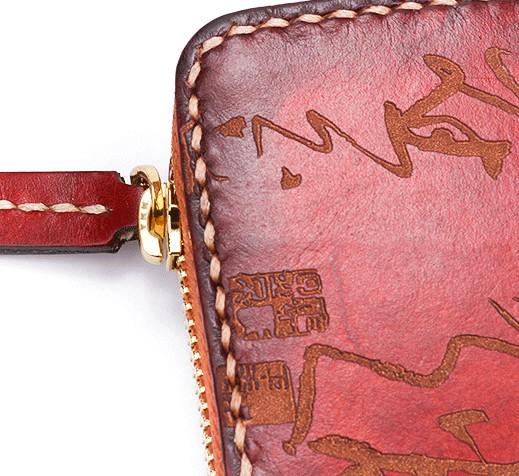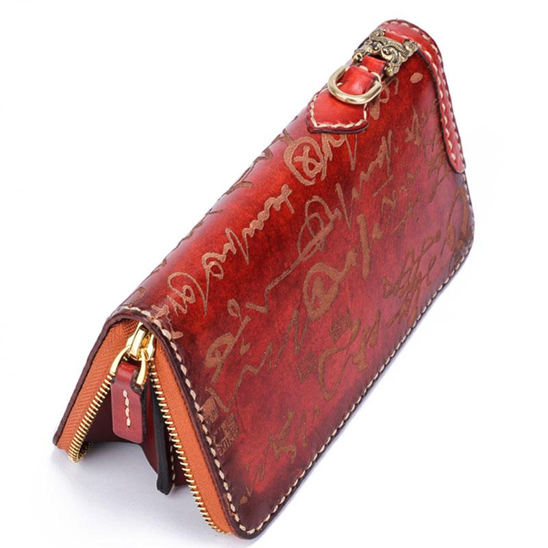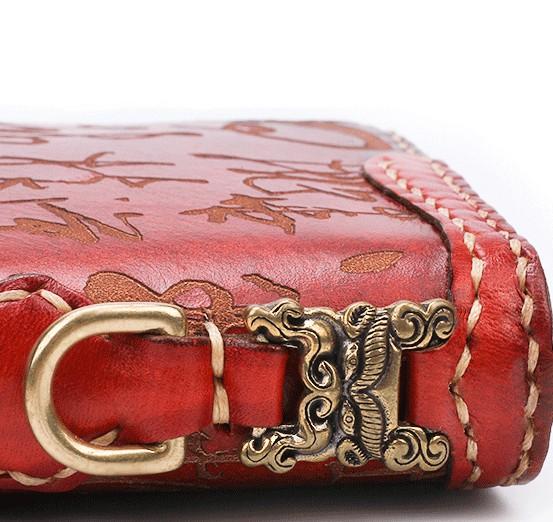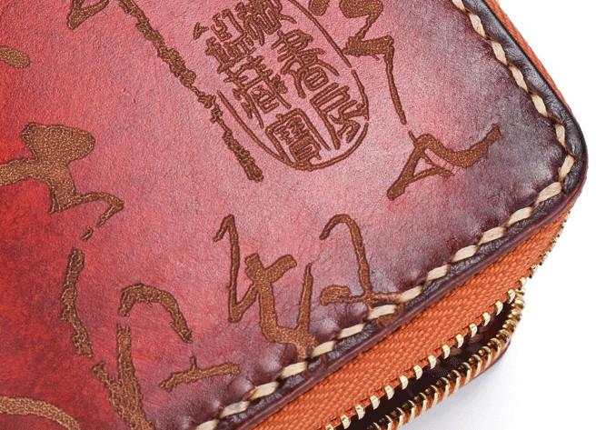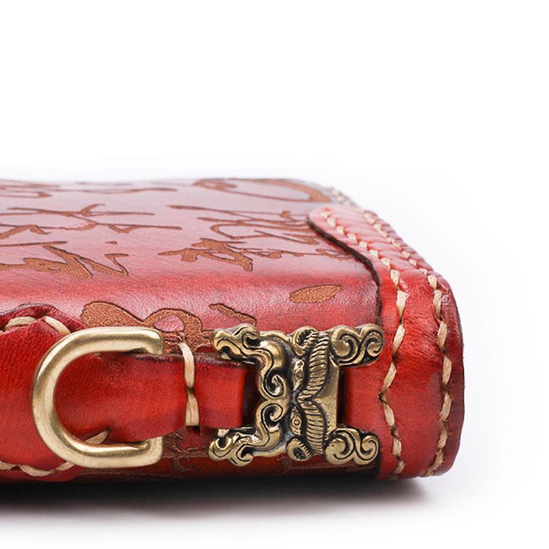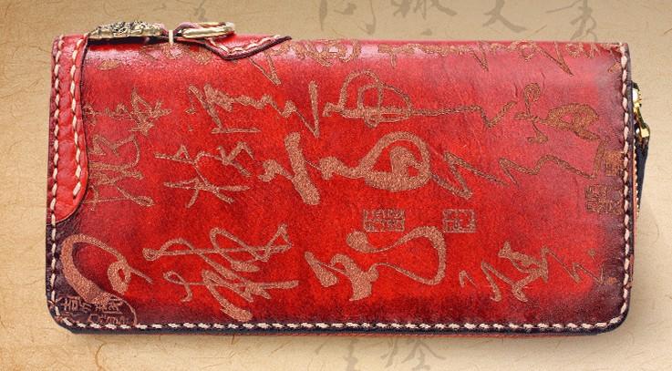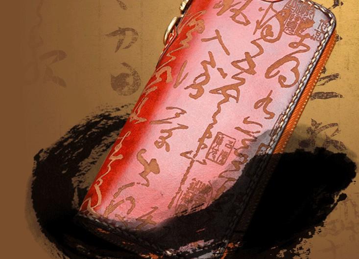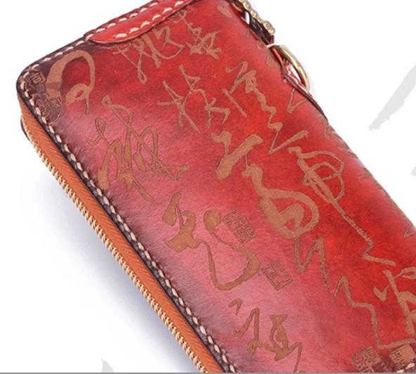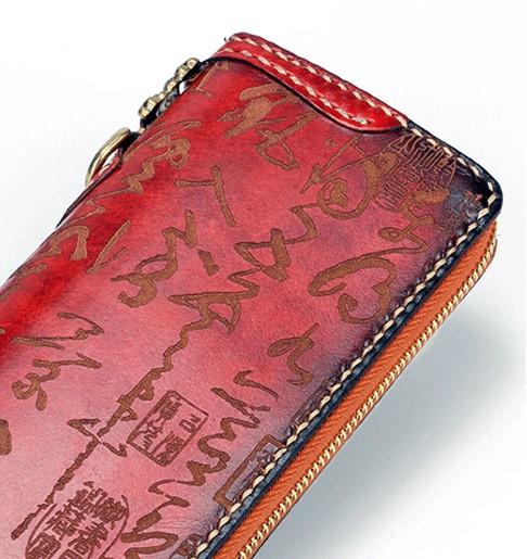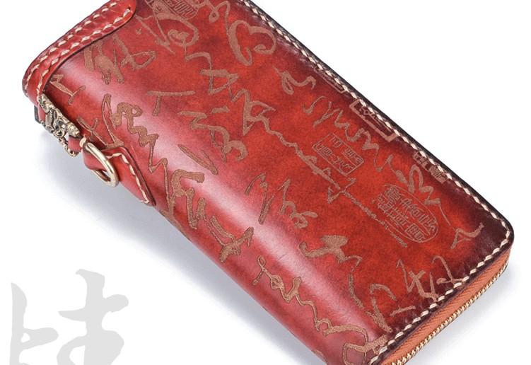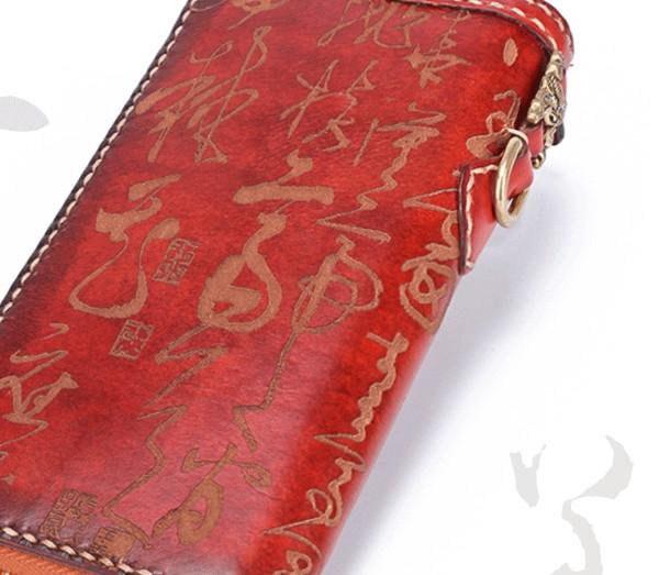 Design: Handmade Leather Mens Chinese Handwriting Chain Biker Wallet Cool Leather Wallet Long Phone Wallets for Men