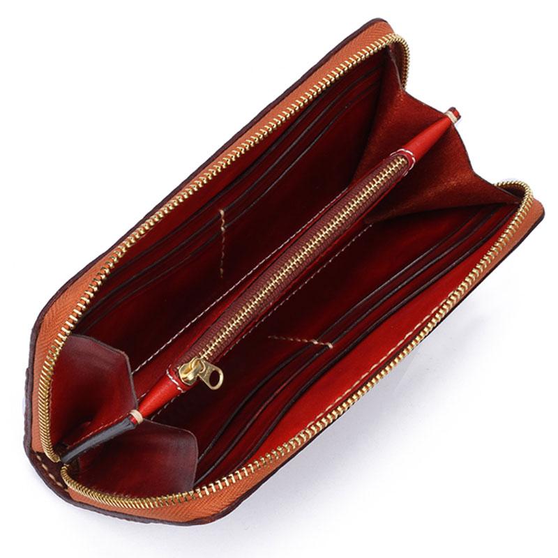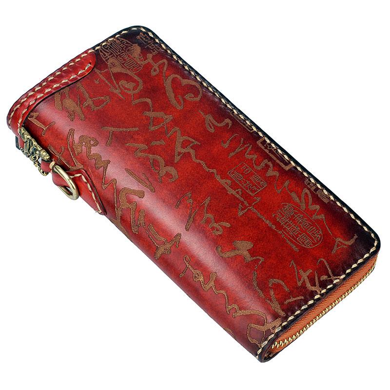 Style: Handmade Leather Mens Chinese Handwriting Chain Biker Wallet Cool Leather Wallet Long Phone Wallets for Men