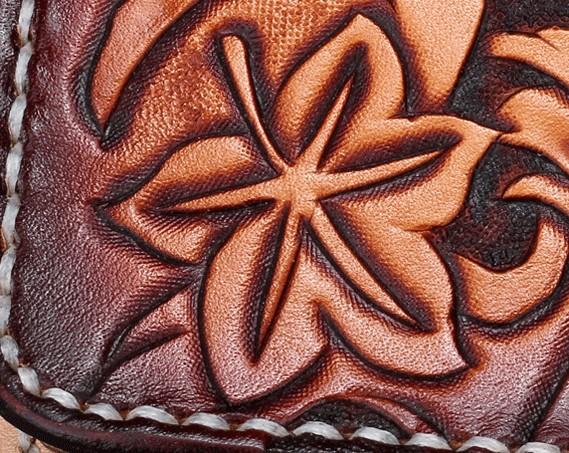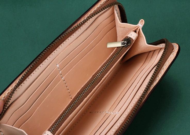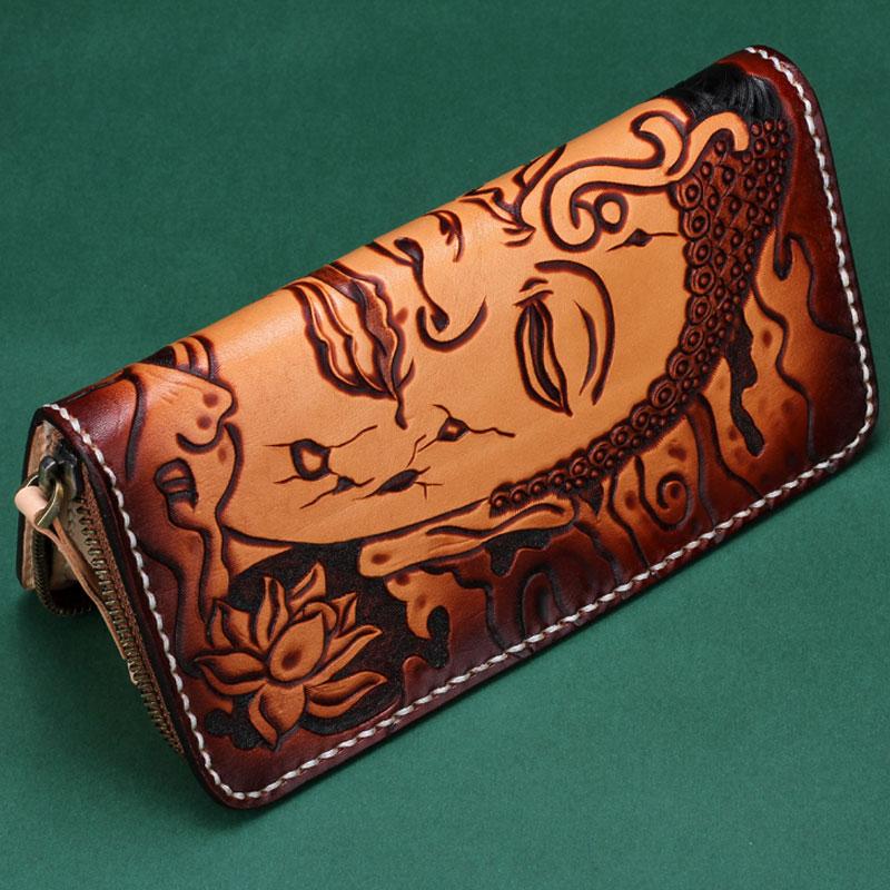 Design: Handmade Leather Mens Clutch Wallet Cool Buddha&Demon Tooled Wallet Long Zipper Wallets for Men
