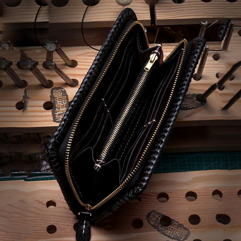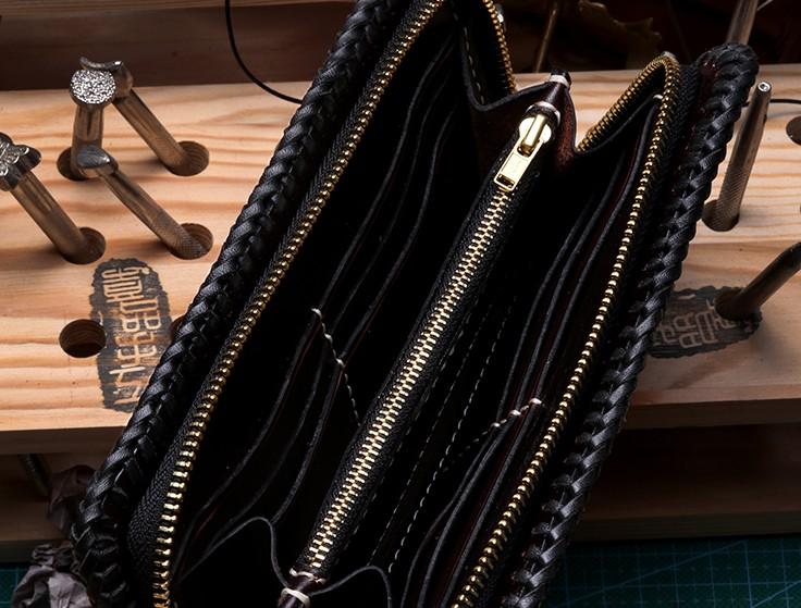 Style: Handmade Leather Mens Clutch Wallet Cool Carp Tooled Wallet Long Zipper Wallets for Men