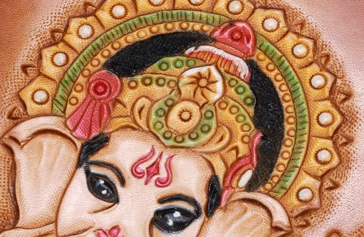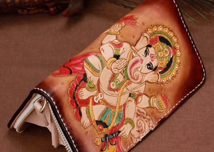 Design: Handmade Leather Mens Clutch Wallet Cool Ganesha Tooled Wallet Long Zipper Wallets for Men
