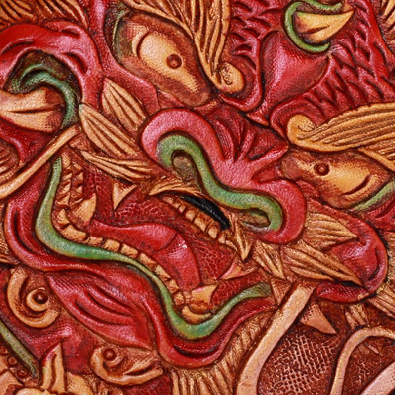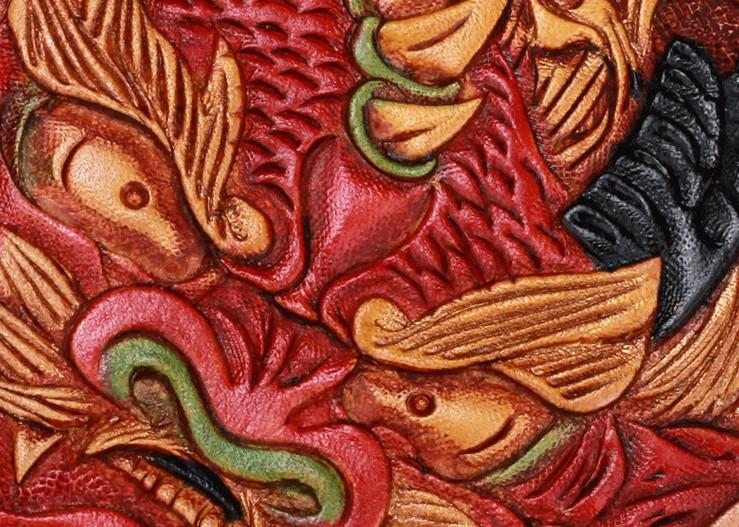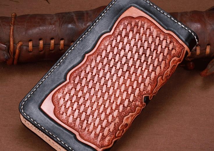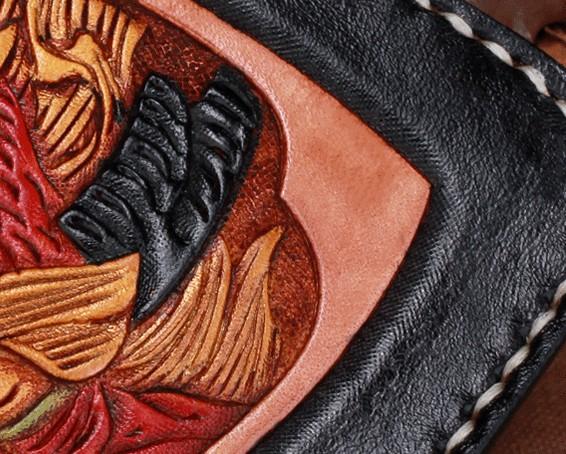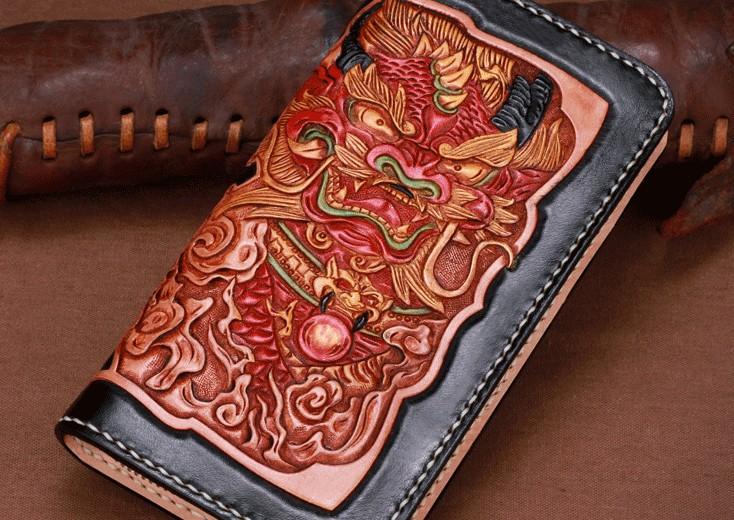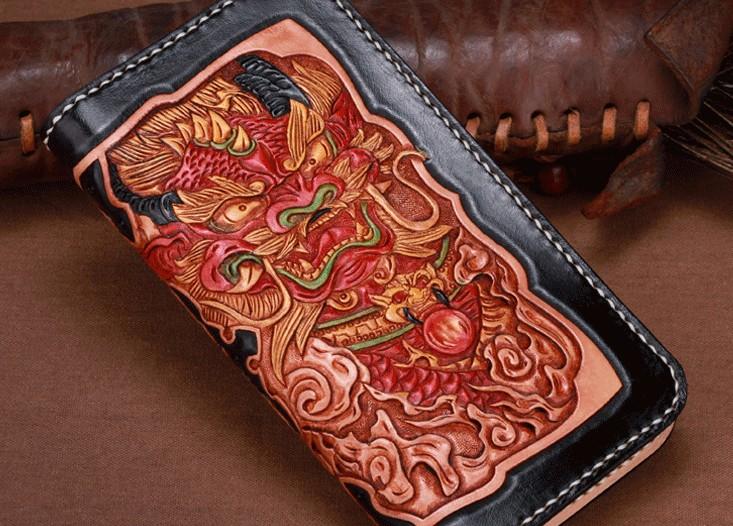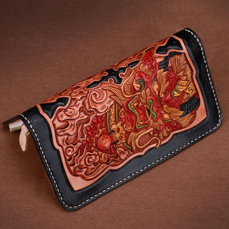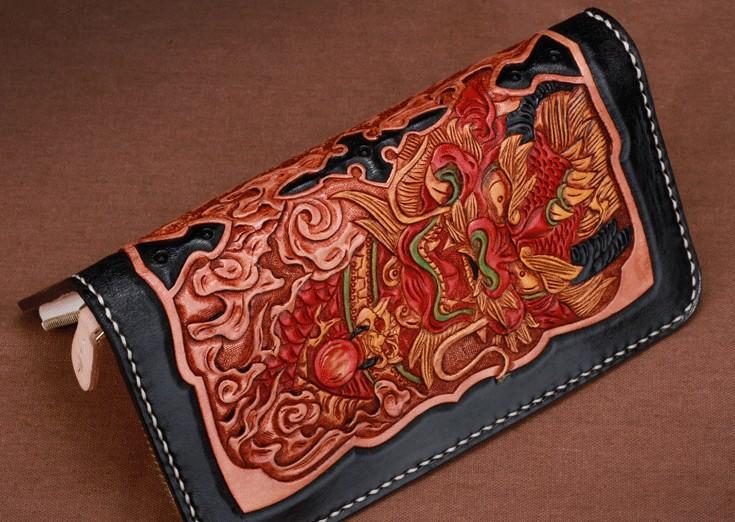 Design: Handmade Leather Mens Clutch Wallet Cool Kylin Tooled Wallet Long Zipper Wallets for Men