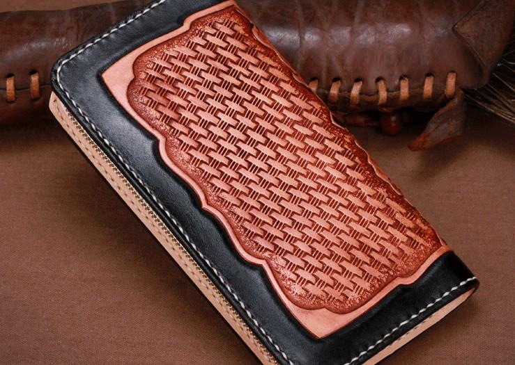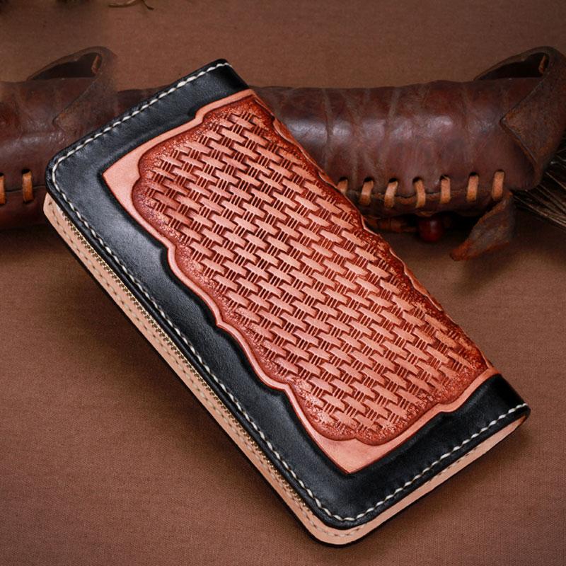 Style: Handmade Leather Mens Clutch Wallet Cool Kylin Tooled Wallet Long Zipper Wallets for Men