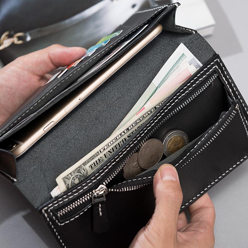 Design: Handmade Leather Mens Clutch Wallet Cool Leather Wallet Long Phone Wallets for Men
