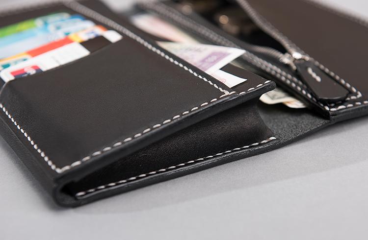 Slots:?2?full size bill slot, 7 card holders, 1 zipper slot
