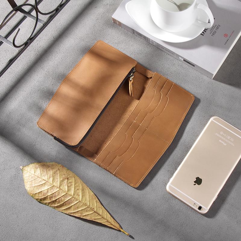 Design: Handmade Leather Mens Clutch Wallet Cool Leather Wallet Long Phone Wallets for Men