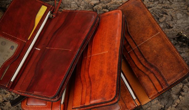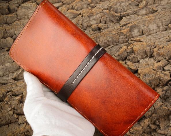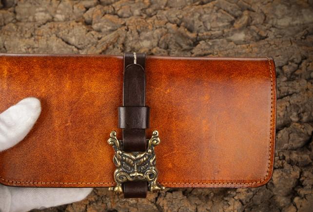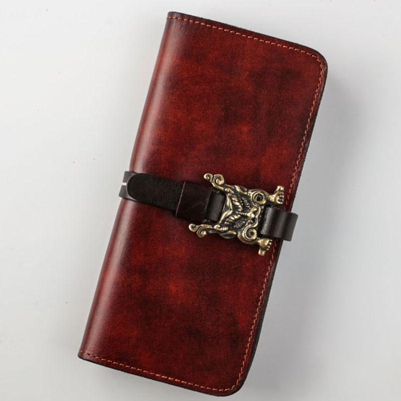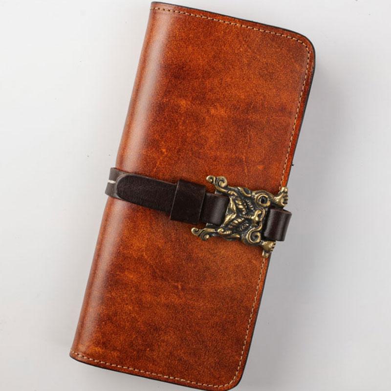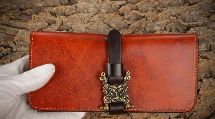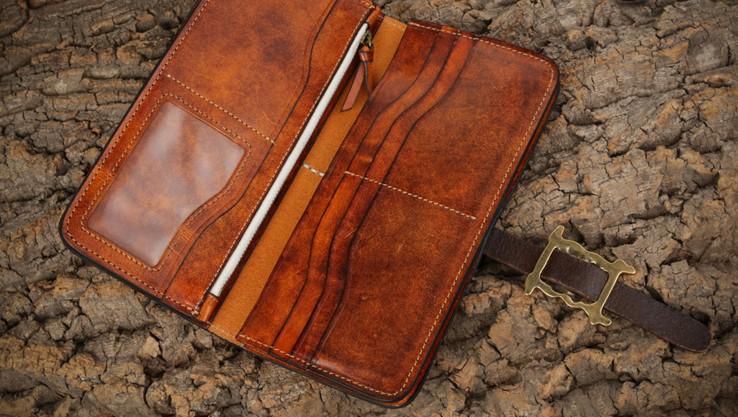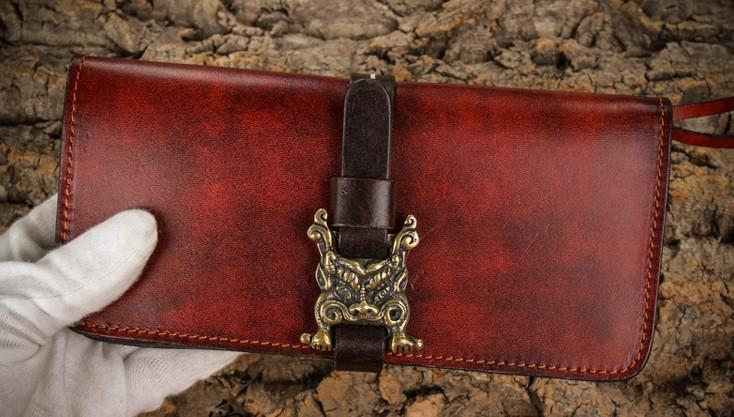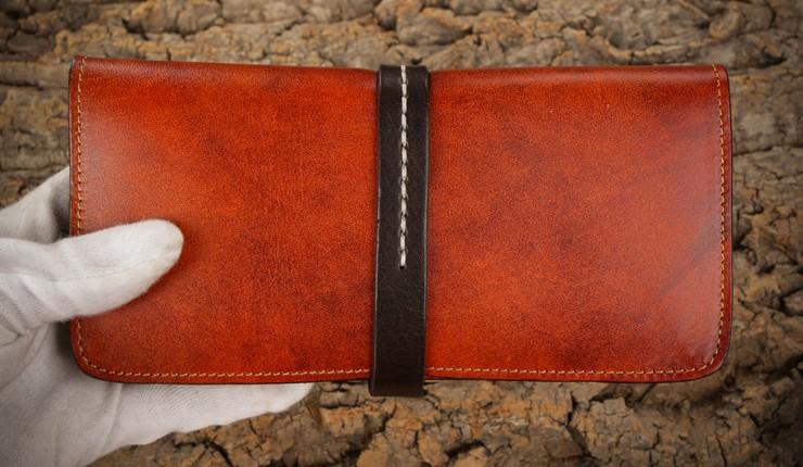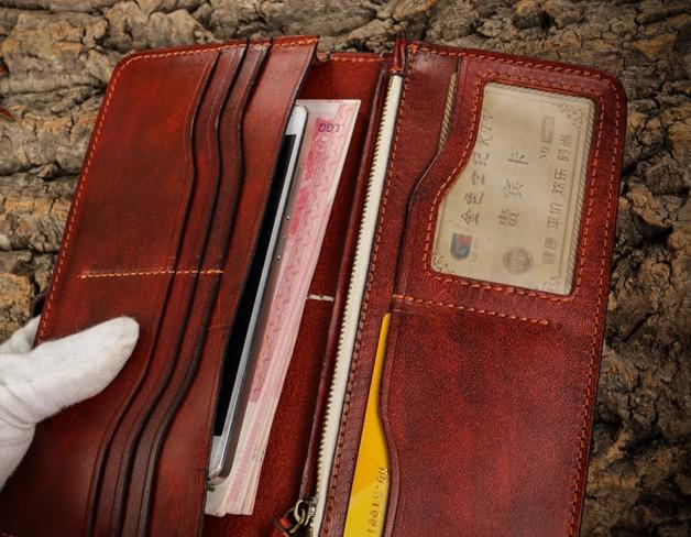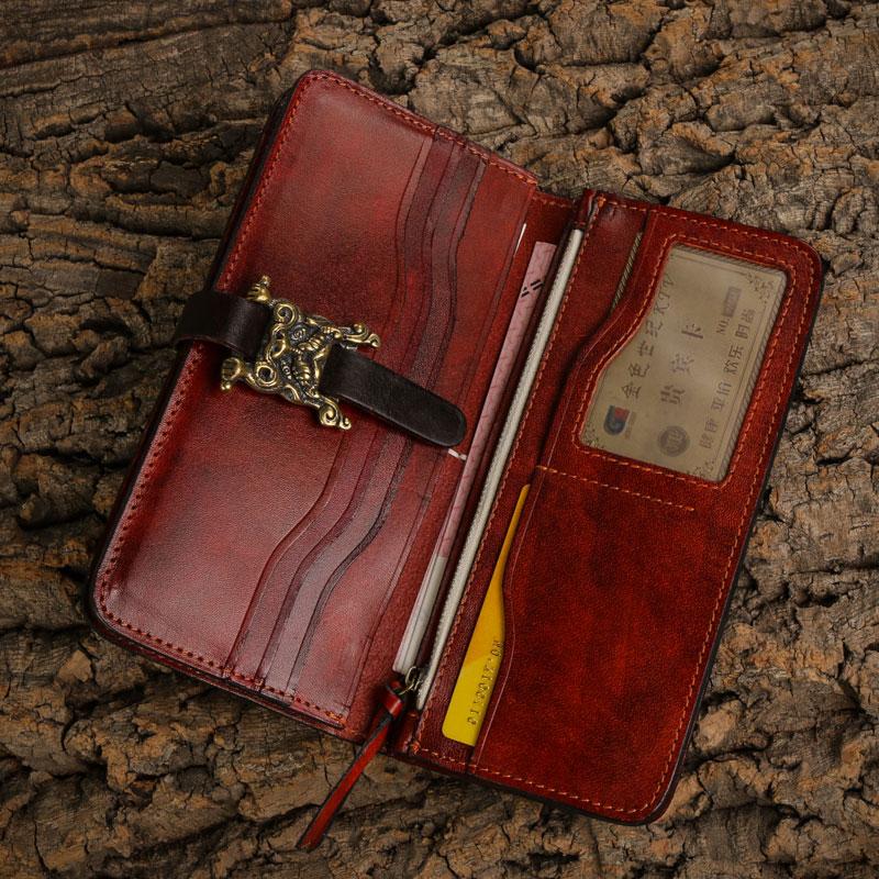 Design: Handmade Leather Mens Clutch Wallet Cool Leather Wallet Long Phone Wallets for Men