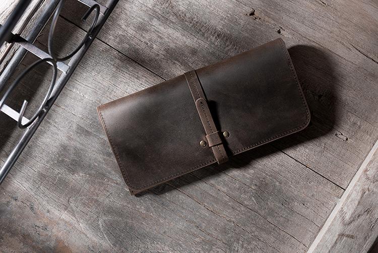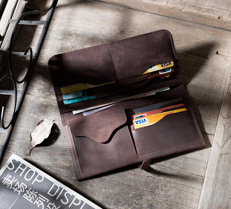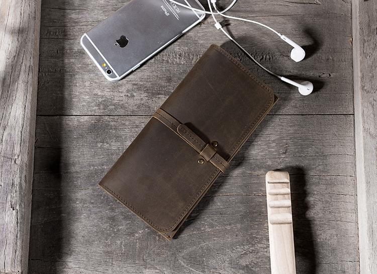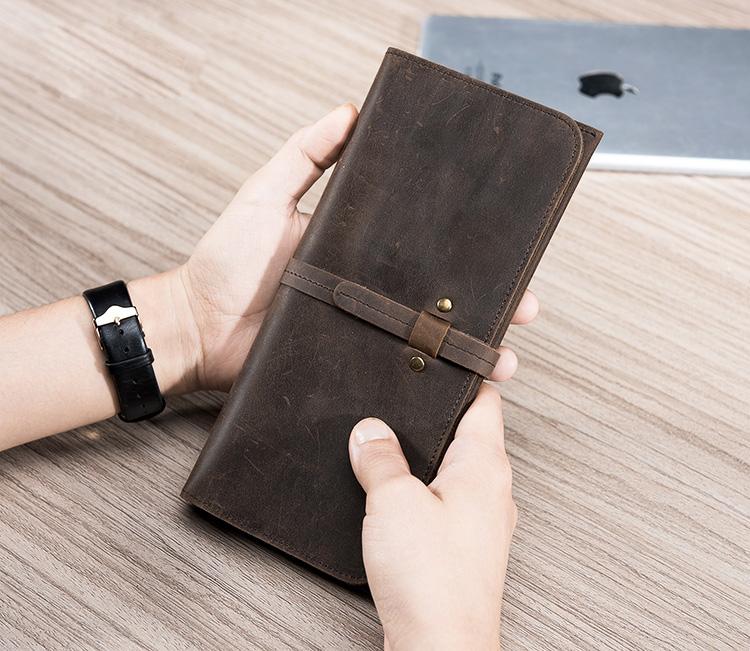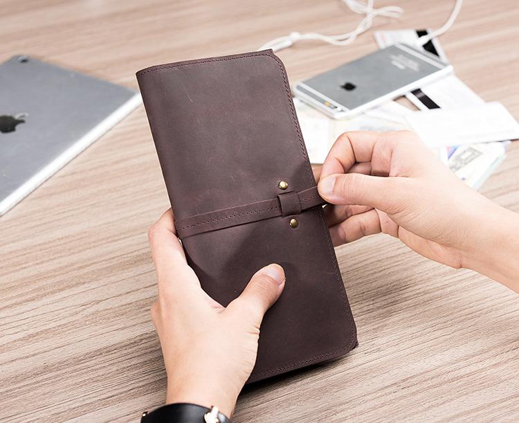 Design: Handmade Leather Mens Clutch Wallet Cool Leather Wallet Long Phone Wallets for Men
