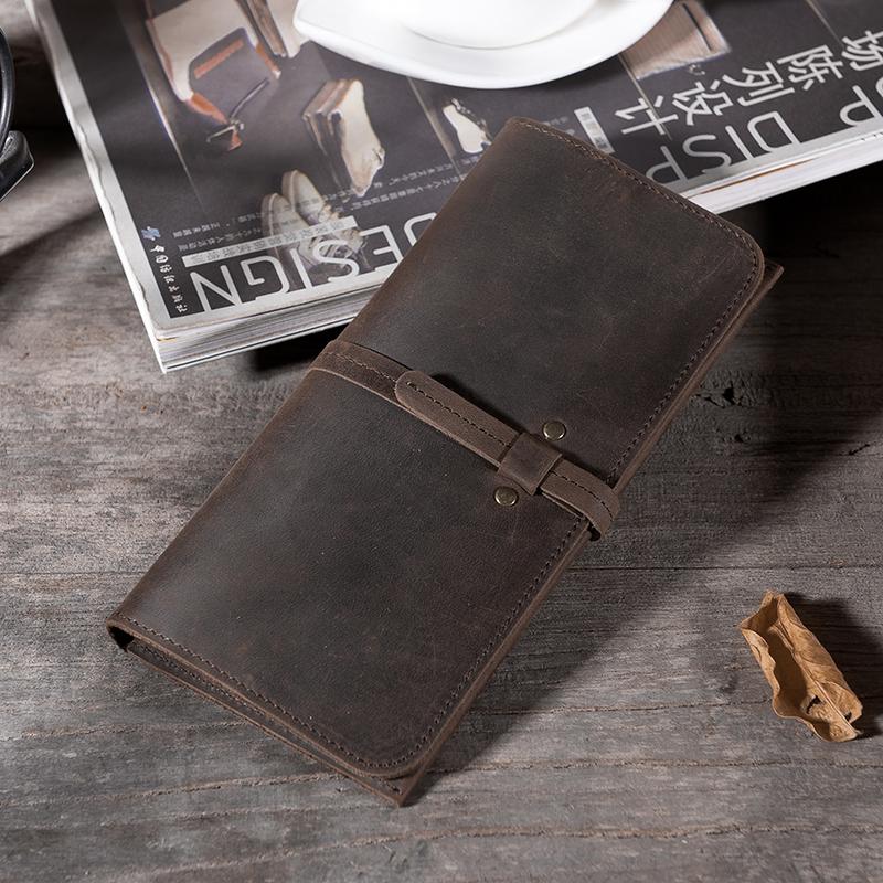 Style: Handmade Leather Mens Clutch Wallet Cool Leather Wallet Long Phone Wallets for Men
