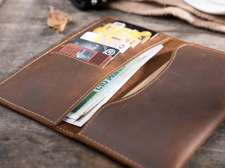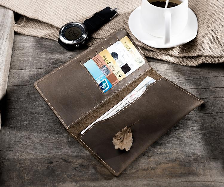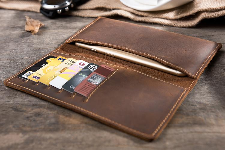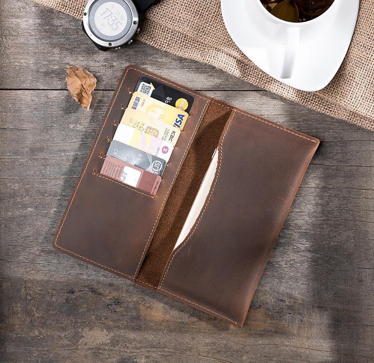 Design: Handmade Leather Mens Clutch Wallet Cool Leather Wallet Long Phone Wallets for Men