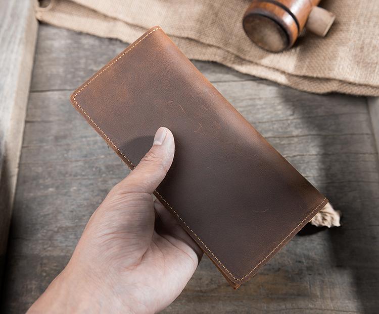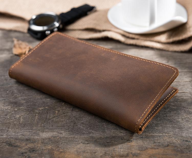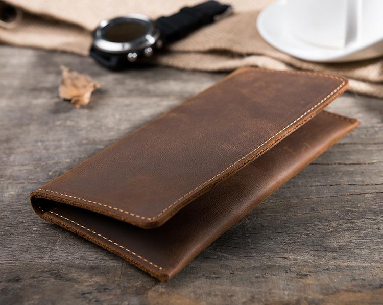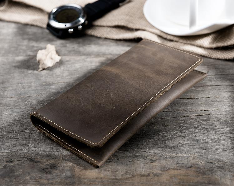 Style: Handmade Leather Mens Clutch Wallet Cool Leather Wallet Long Phone Wallets for Men