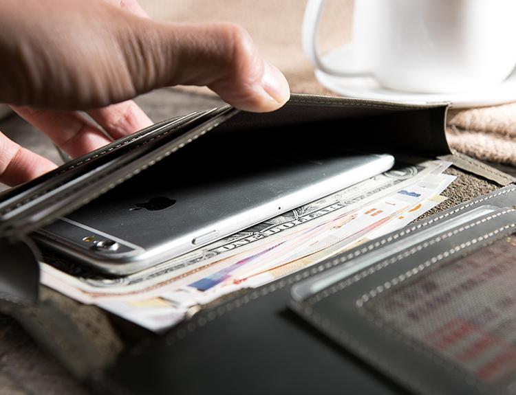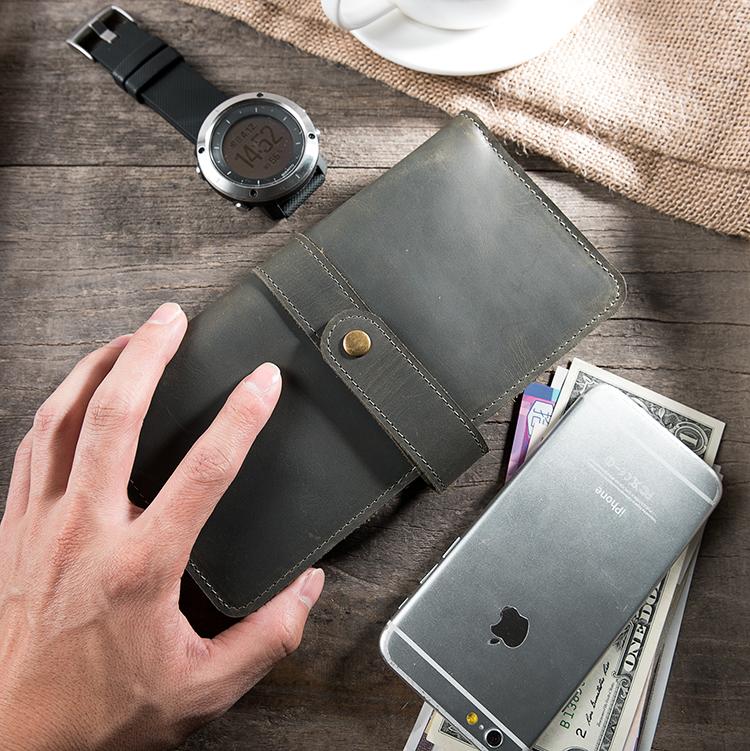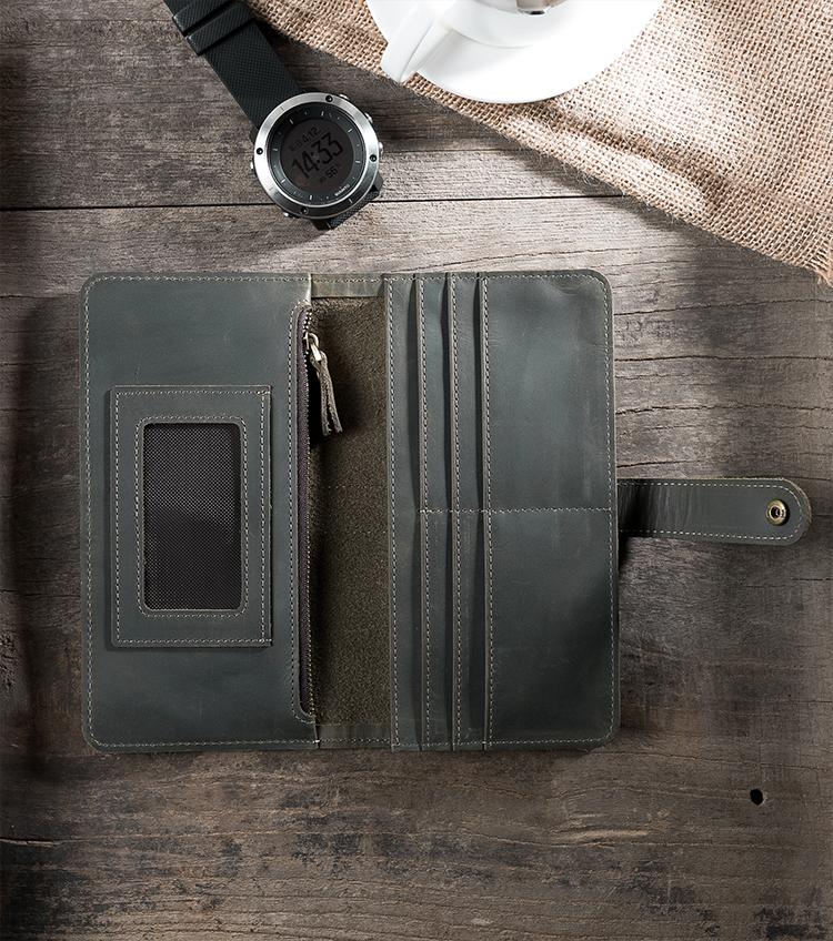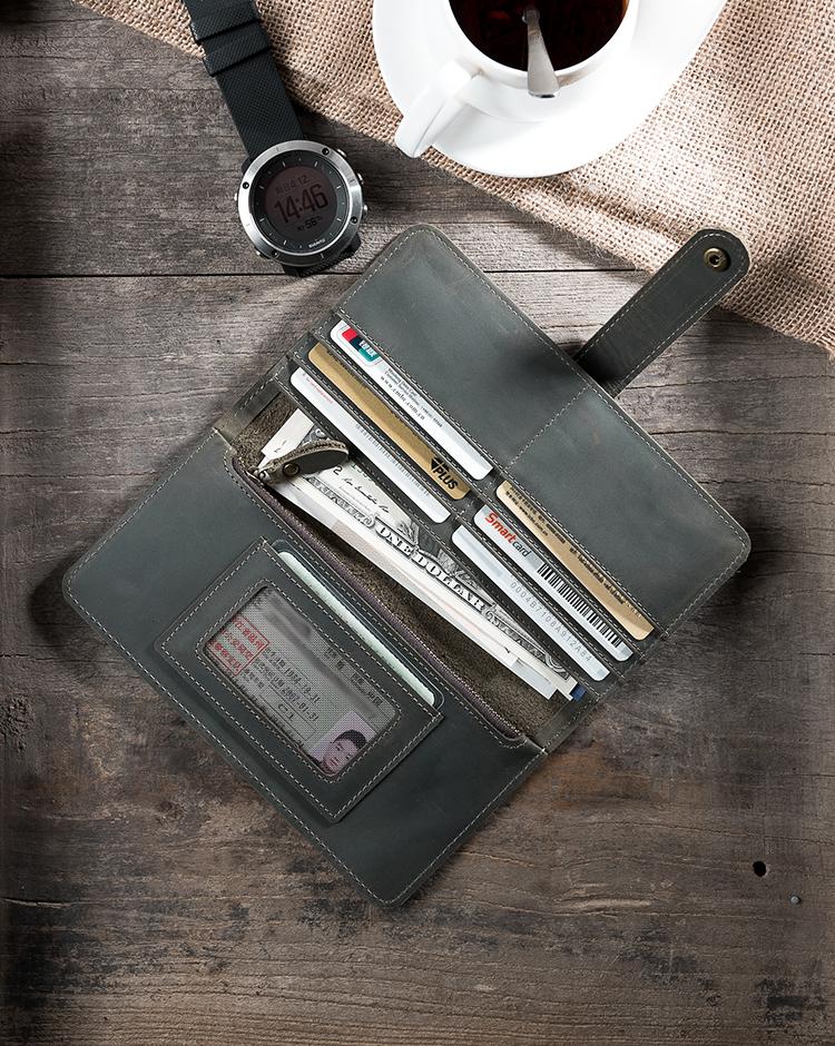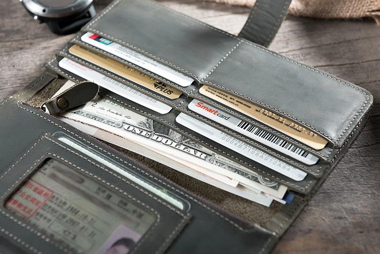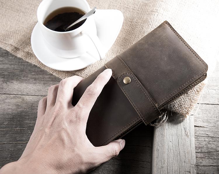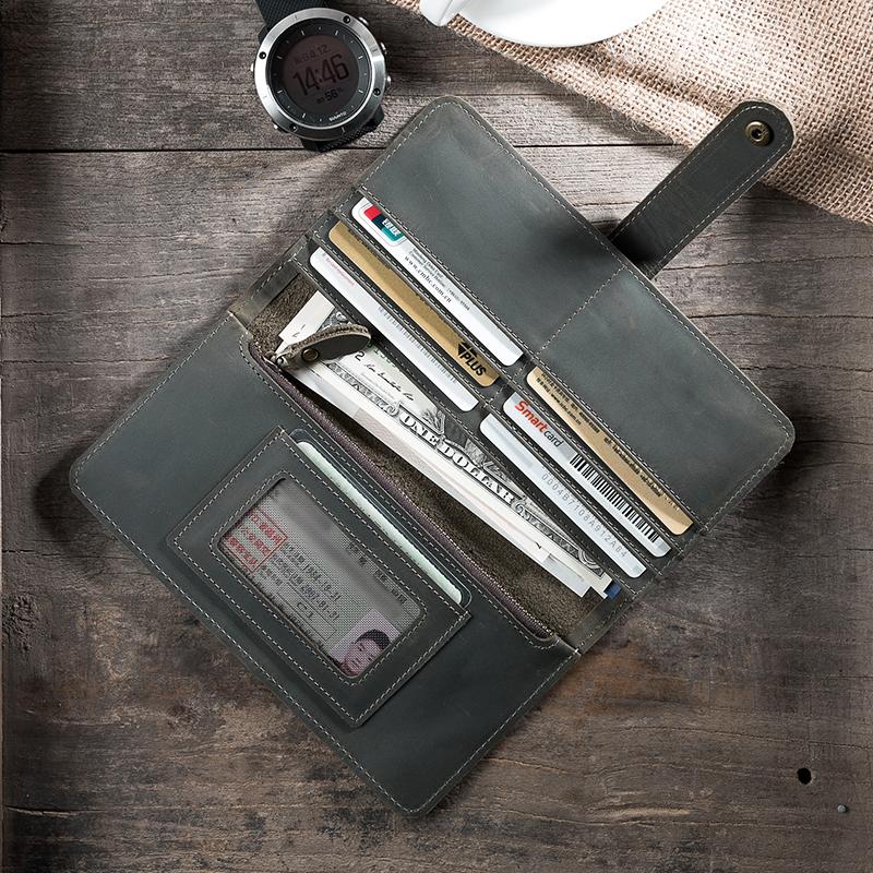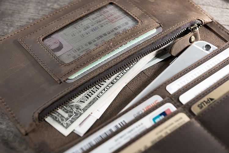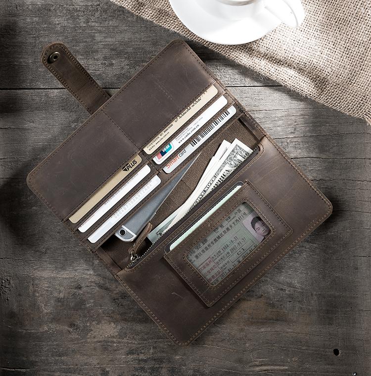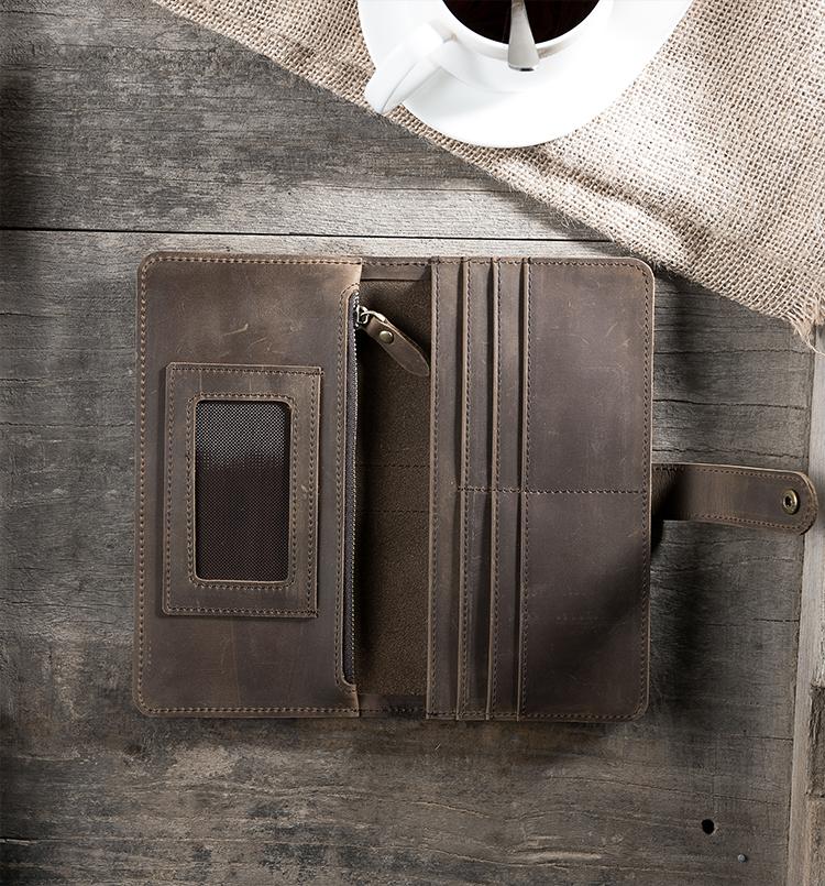 Design: Handmade Leather Mens Clutch Wallet Cool Leather Wallet Long Phone Wallets for Men