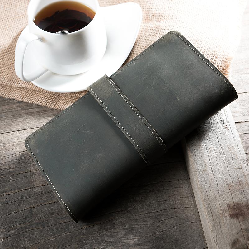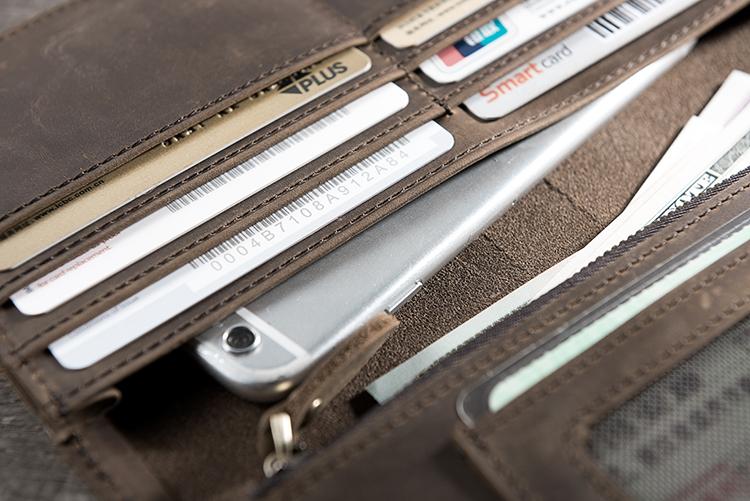 Style: Handmade Leather Mens Clutch Wallet Cool Leather Wallet Long Phone Wallets for Men