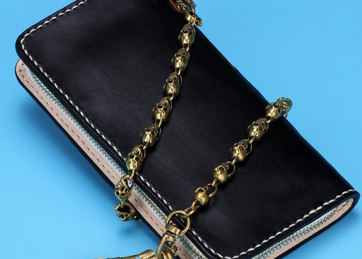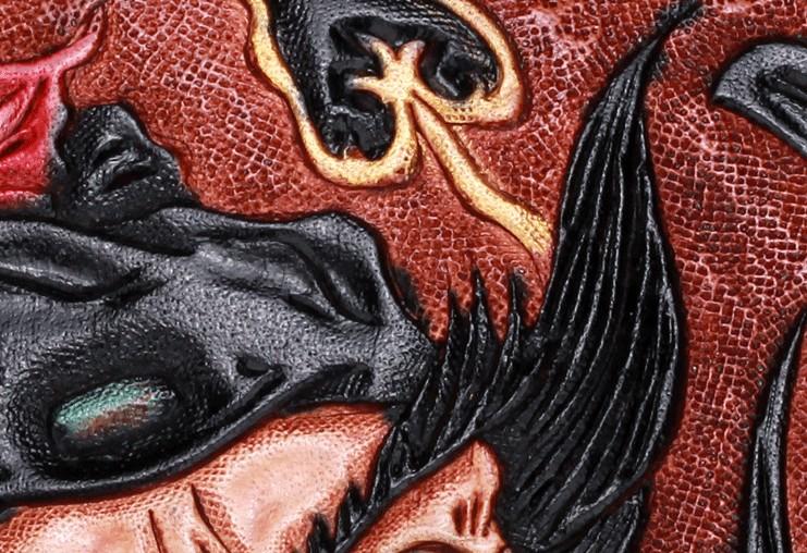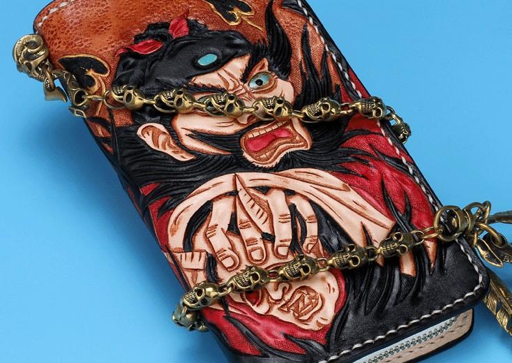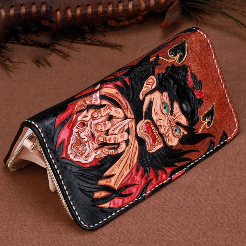 Design: Handmade Leather Mens Clutch Wallet Cool Zhong Kui Tooled Wallet Long Zipper Wallets for Men